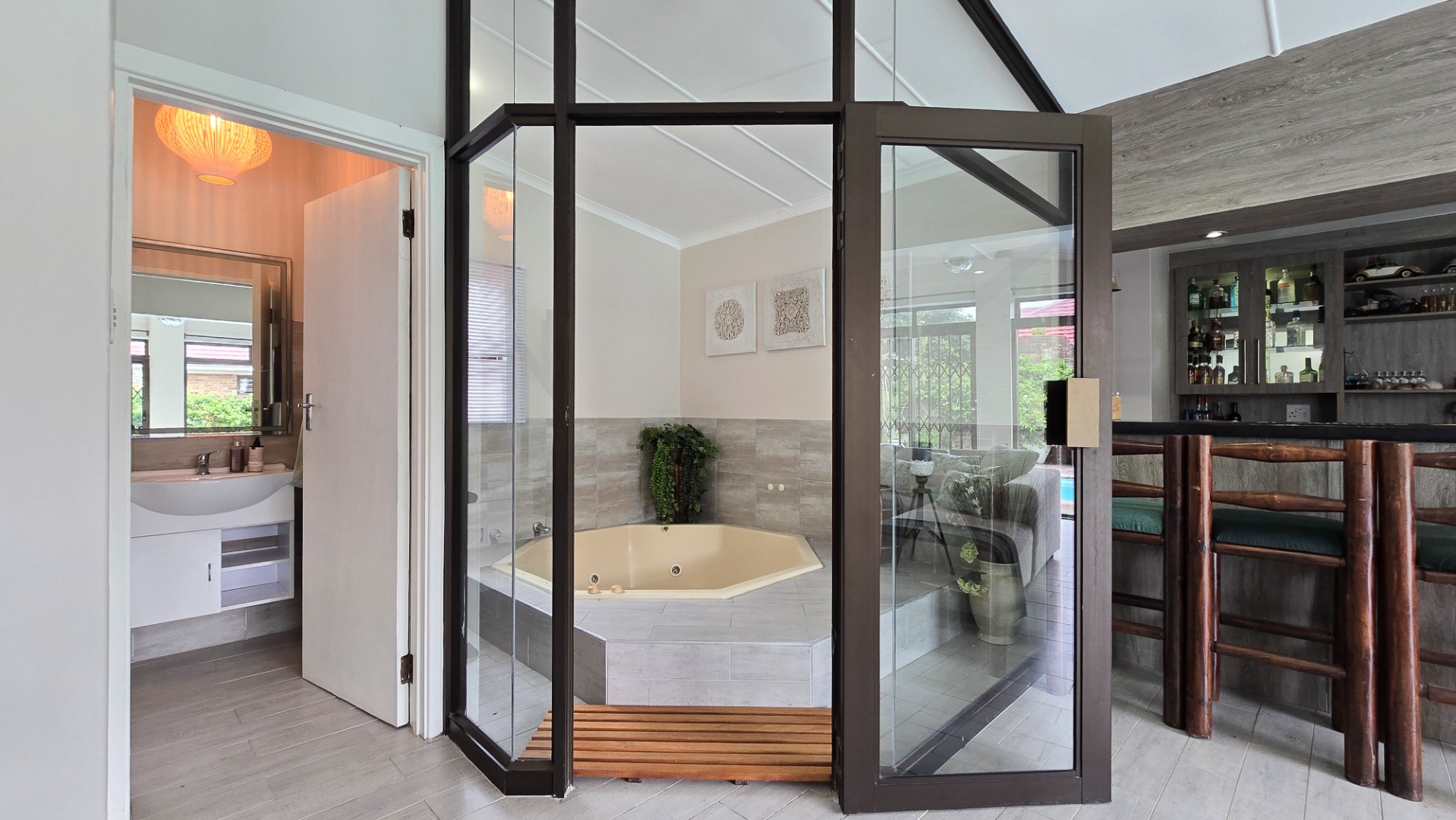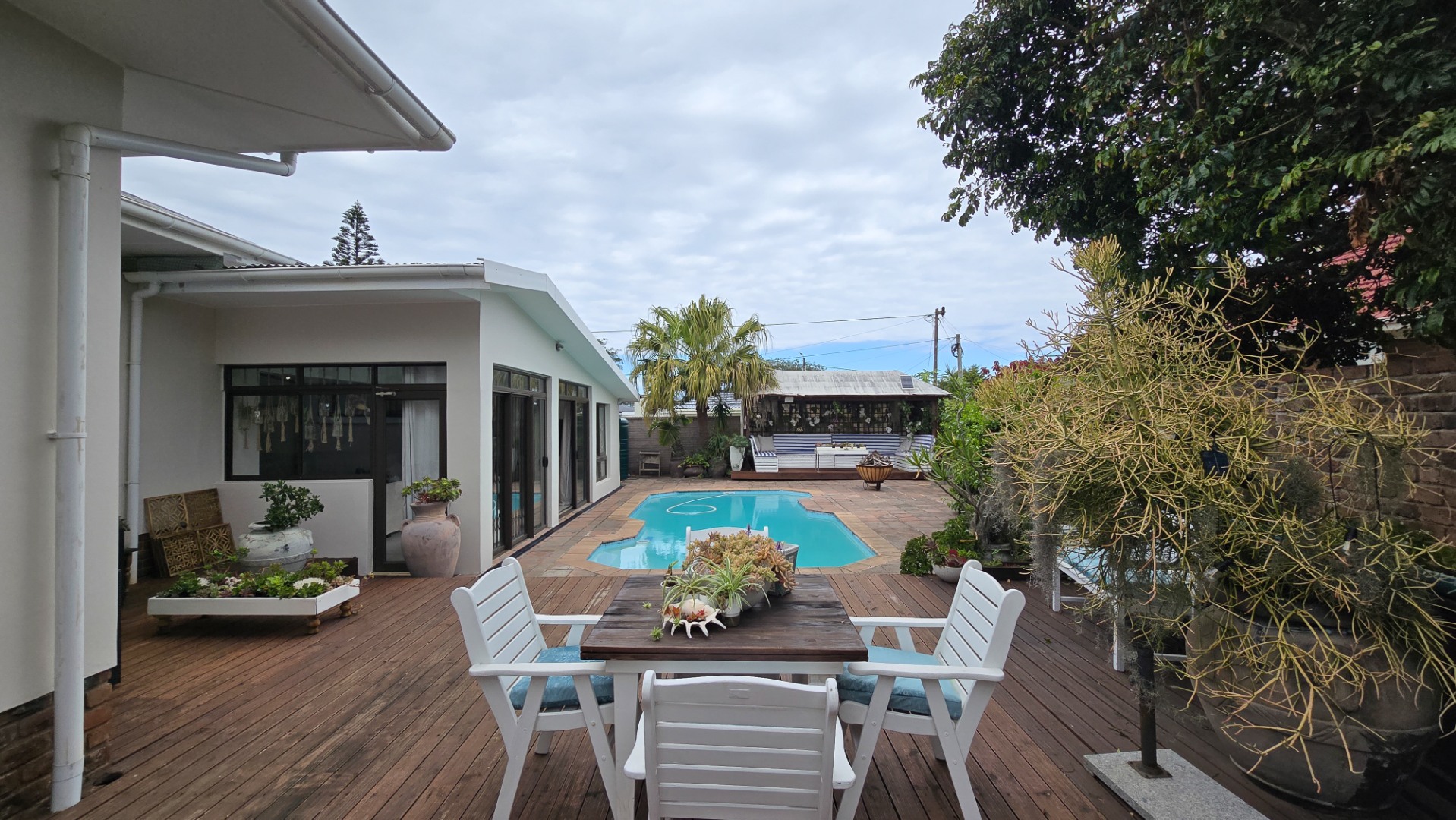 Experience the perfect blend of elegance and comfort in this stunning 6-bedroom, 5-bathroom home, ideally situated in one of Gonubie’s most sought-after streets. Designed with space, style, and functionality in mind, this home is ideal for a large family or can easily be converted into a luxurious bed and breakfast. Step into beautifully maintained gardens that surround a sparkling swimming pool, relaxing jacuzzi, and two outdoor braai areas — perfect for entertaining or unwinding.