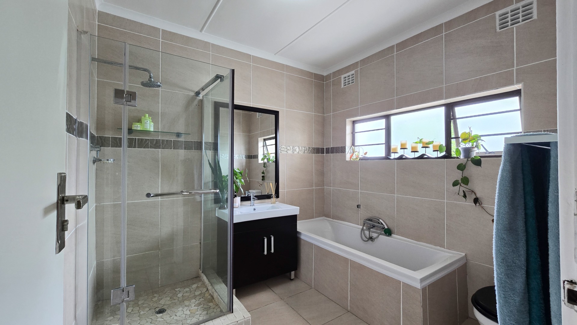 Experience the perfect blend of elegance and comfort in this stunning 6-bedroom, 5-bathroom home, ideally situated in one of Gonubie’s most sought-after streets. Designed with space, style, and functionality in mind, this home is ideal for a large family or can easily be converted into a luxurious bed and breakfast. Step into beautifully maintained gardens that surround a sparkling swimming pool, relaxing jacuzzi, and two outdoor braai areas — perfect for entertaining or unwinding.