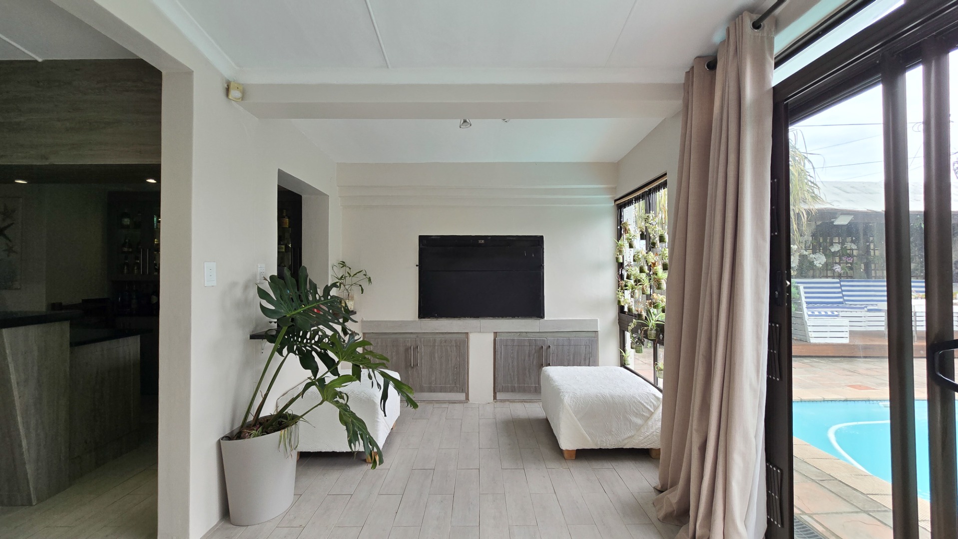 Inside, a built-in bar and spacious lounge provide a welcoming setting for family gatherings and special occasions, while the tranquil koi pond adds a peaceful touch to the outdoor ambience. This home is packed with practical and modern features, including 4 automated garages, an inverter with solar panels, solar geysers, servants’ quarters, and a paved driveway. Every detail reflects the care and pride of ownership that has kept this property in exceptional condition. Whether you’re searching for a spacious family retreat or a home with guesthouse potential, this exceptional Gonubie property promises comfort, luxury, and lasting value.