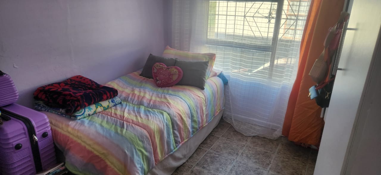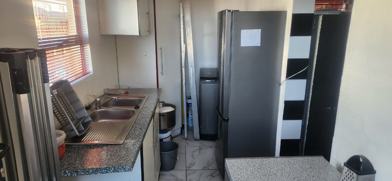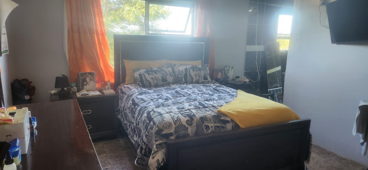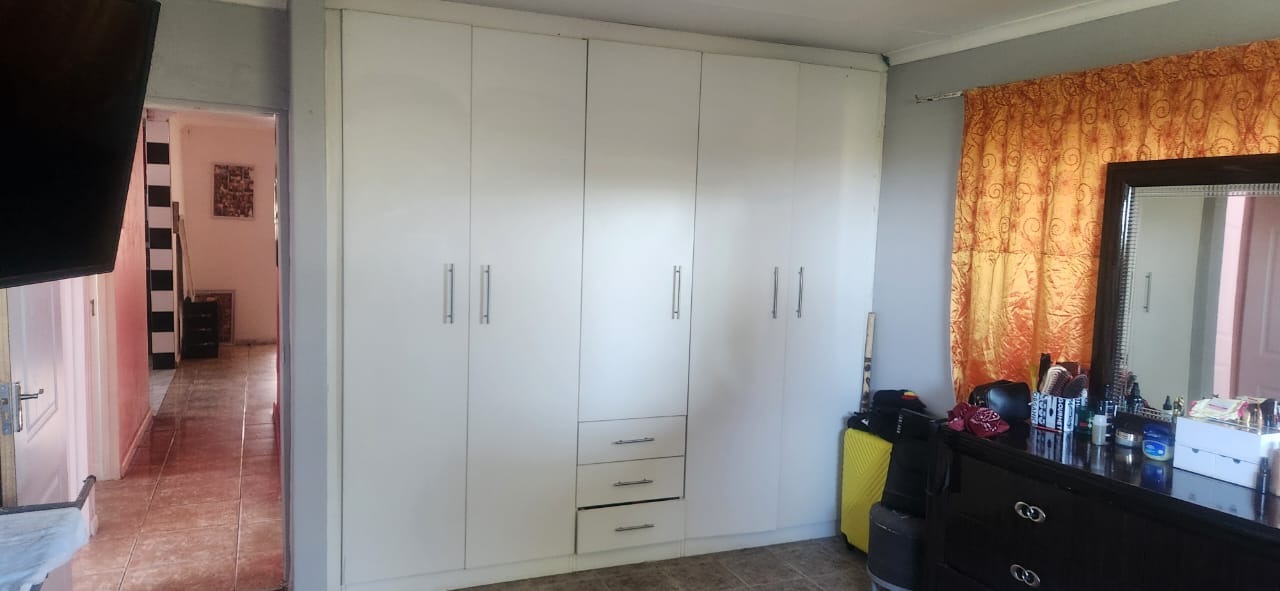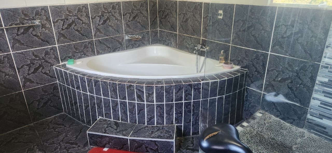 The home boasts three comfortably sized bedrooms and two bathrooms, including a main ensuite that adds privacy and convenience to the master bedroom. For added peace of mind, the property is fitted with burglar bars throughout.