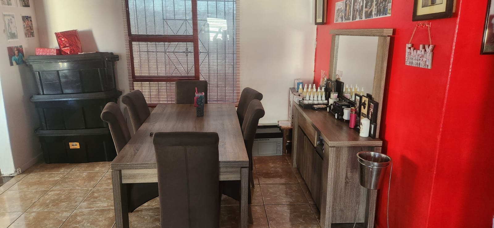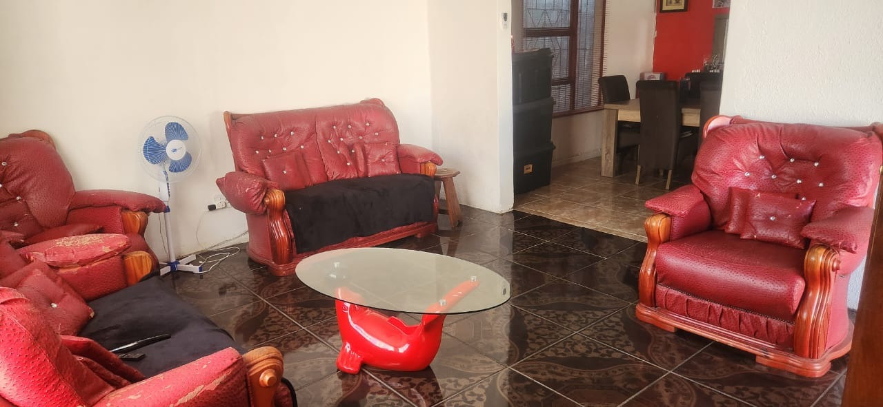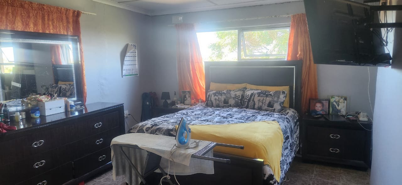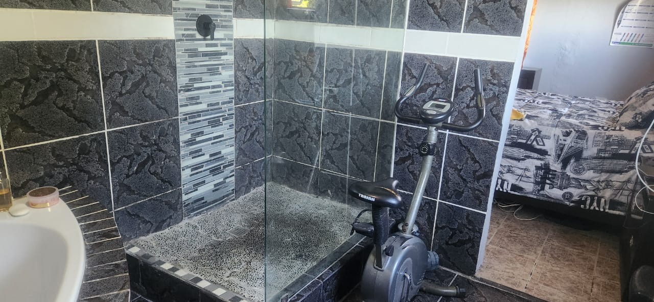 The home boasts three comfortably sized bedrooms and two bathrooms, including a main ensuite that adds privacy and convenience to the master bedroom. For added peace of mind, the property is fitted with burglar bars throughout.