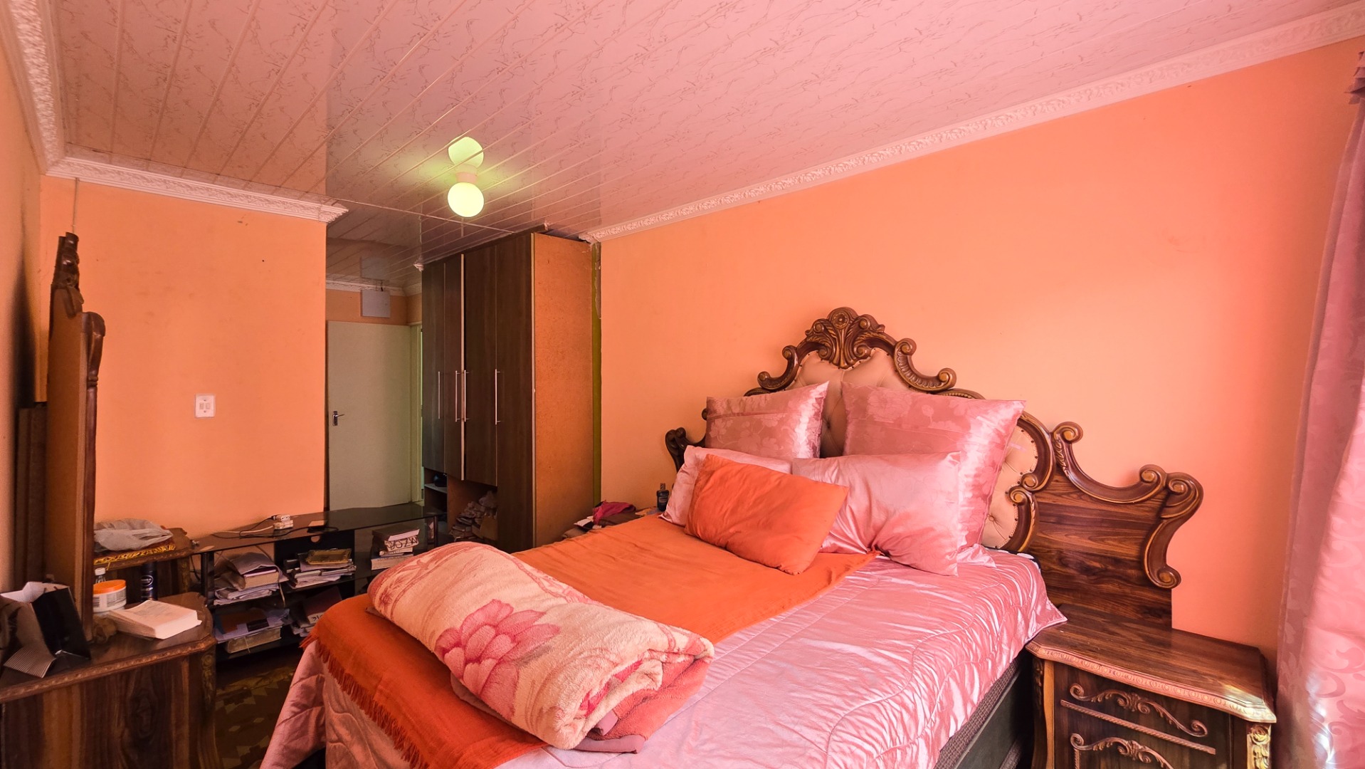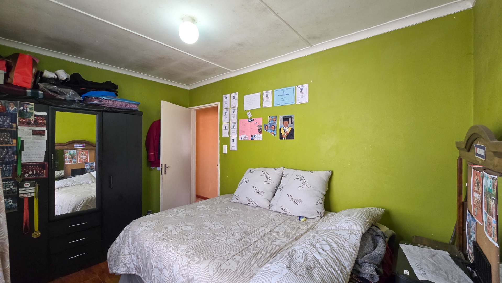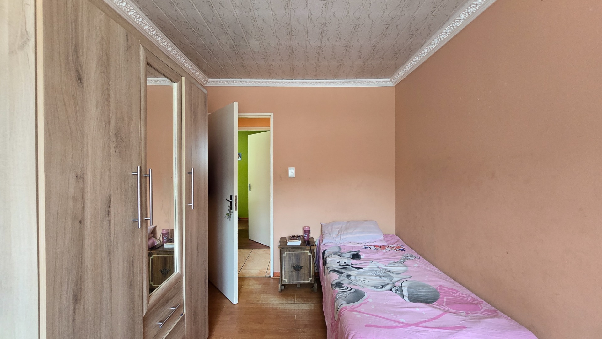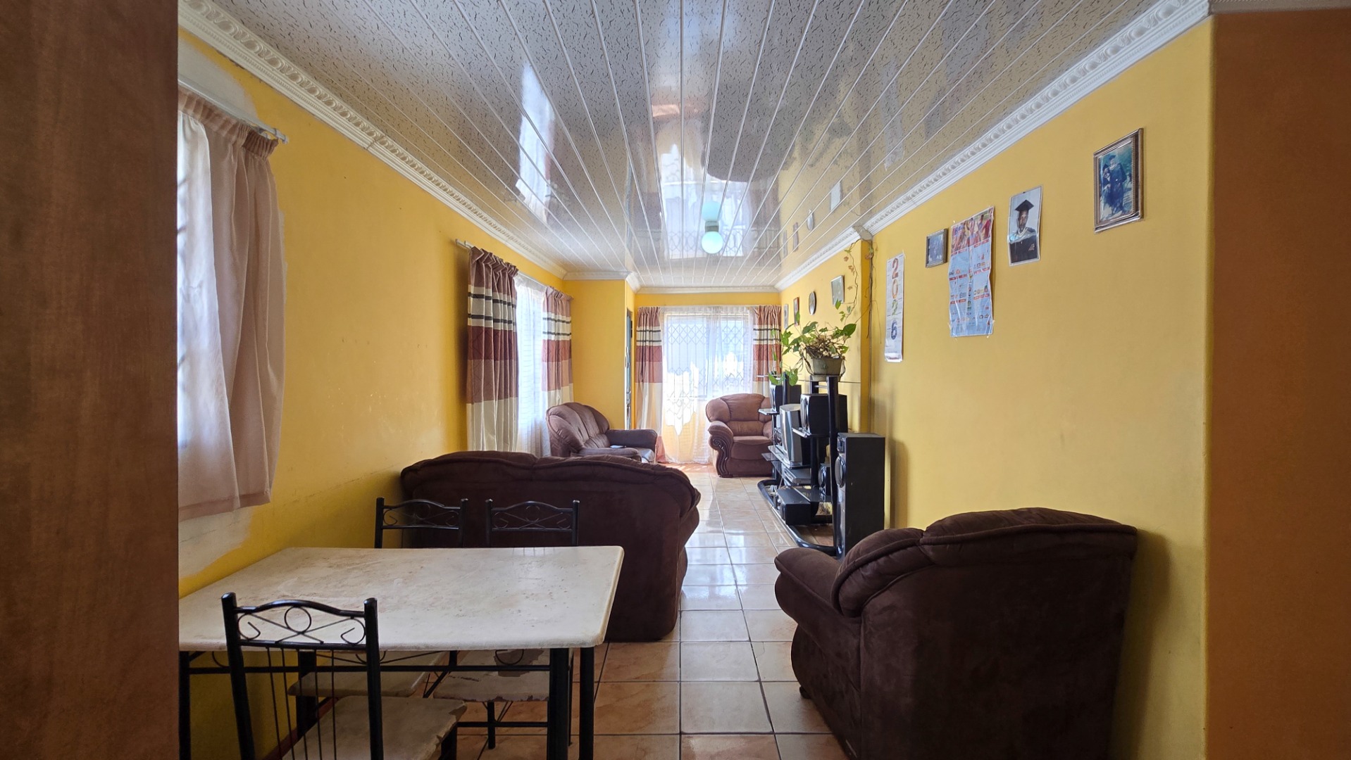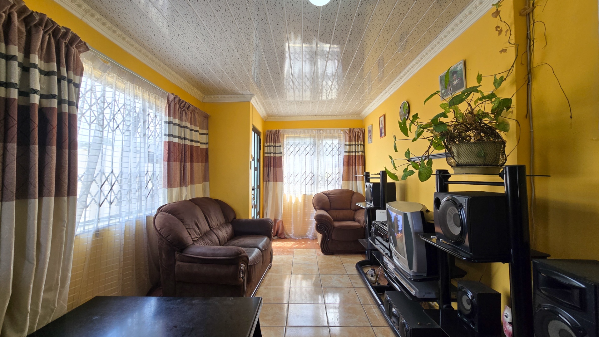 The residence comprises three comfortable bedrooms, each offering natural light and fitted with security bars for peace of mind. These rooms share a well-appointed bathroom. While some interior elements like the yellow wall colours and ceiling panels reflect a classic style, they offer a canvas for personalisation to suit modern tastes.