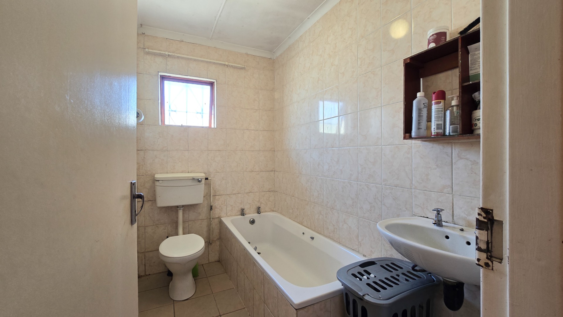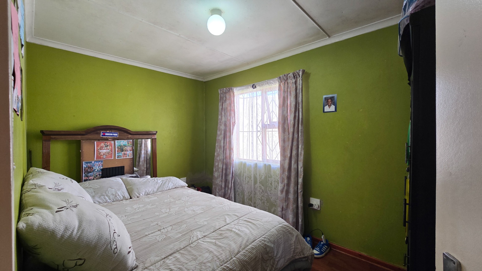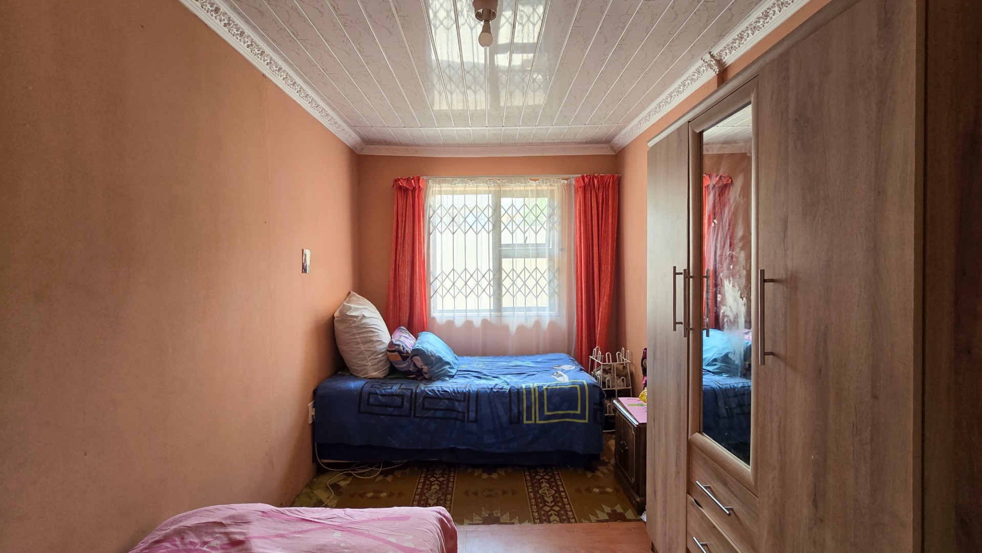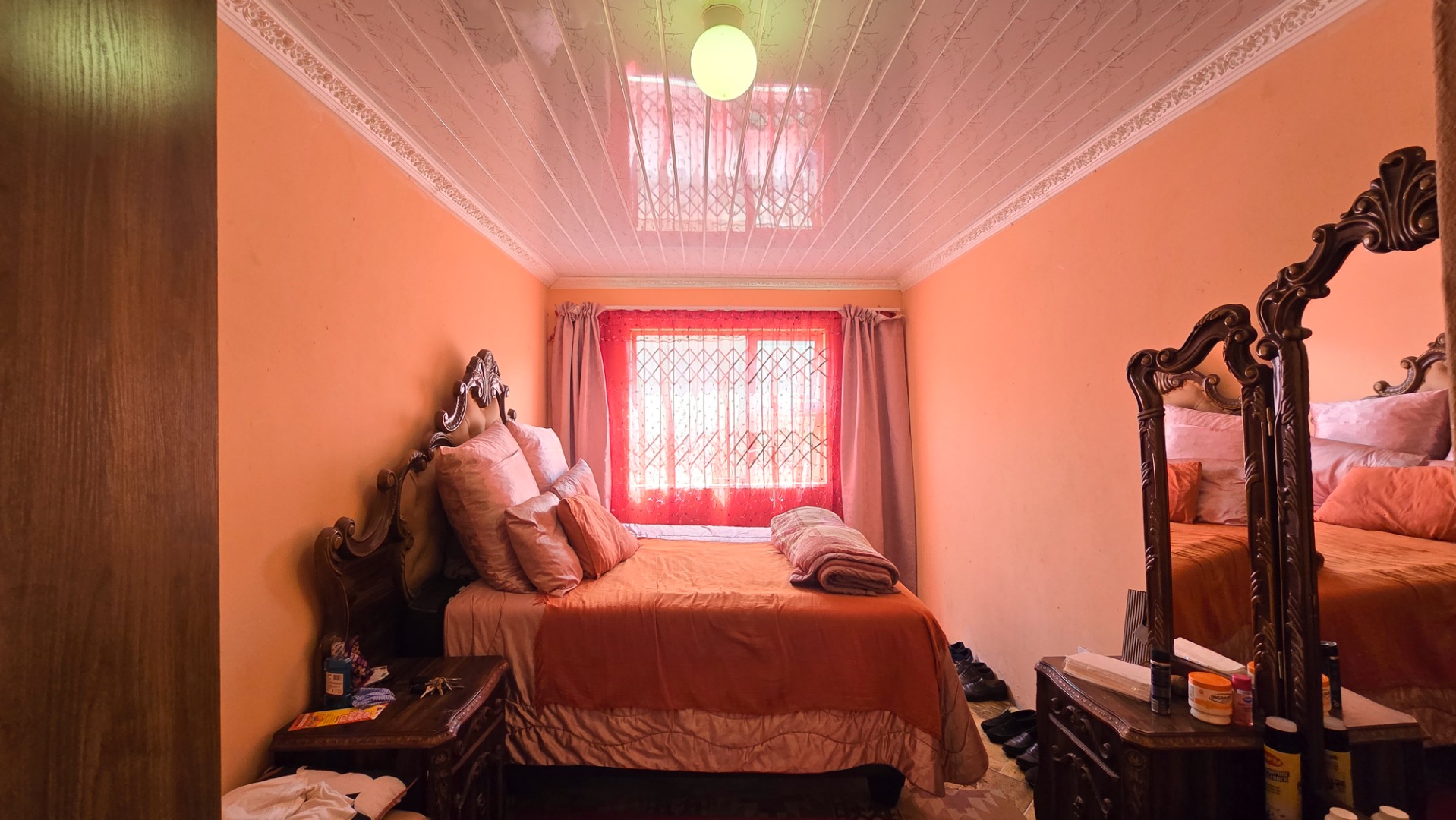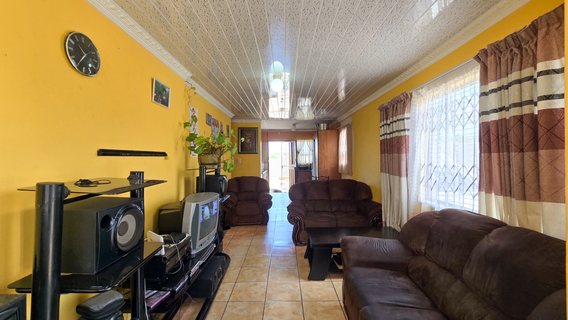 The residence comprises three comfortable bedrooms, each offering natural light and fitted with security bars for peace of mind. These rooms share a well-appointed bathroom. While some interior elements like the yellow wall colours and ceiling panels reflect a classic style, they offer a canvas for personalisation to suit modern tastes.