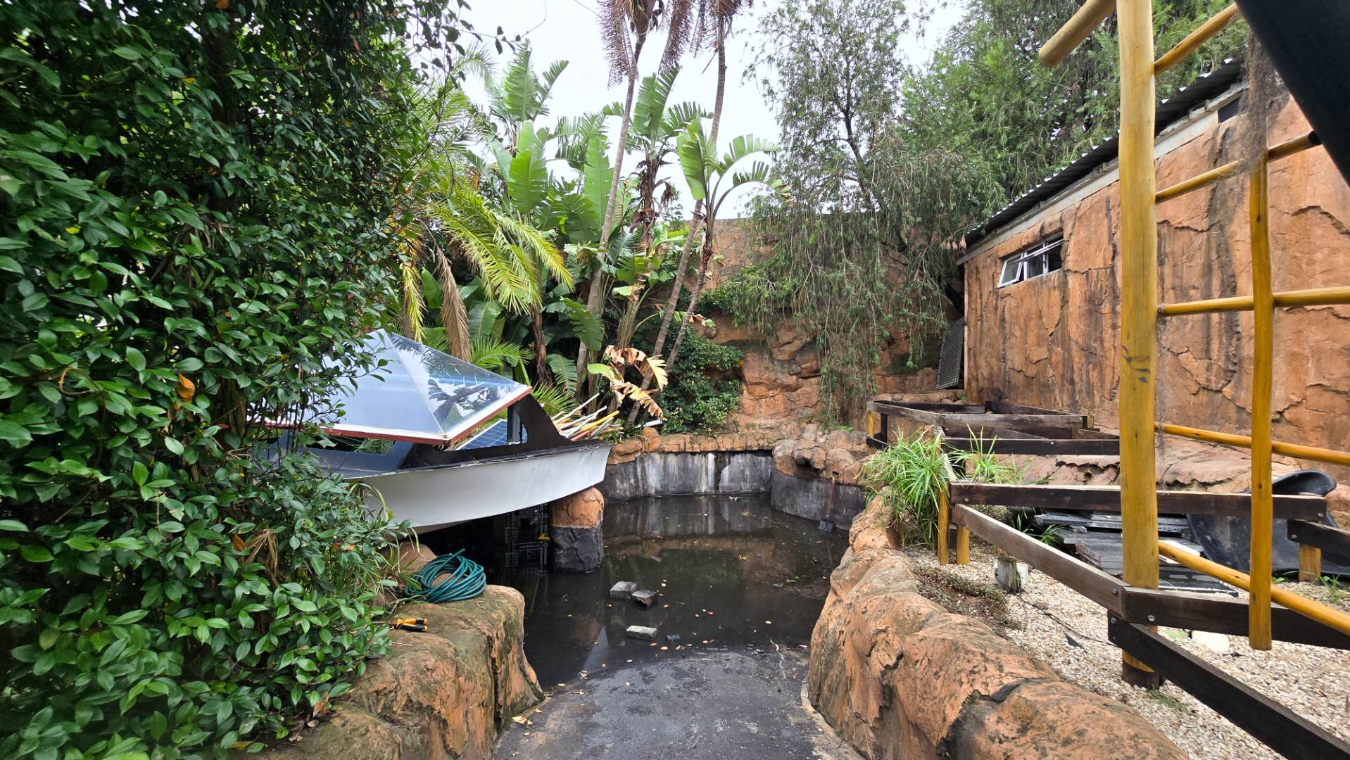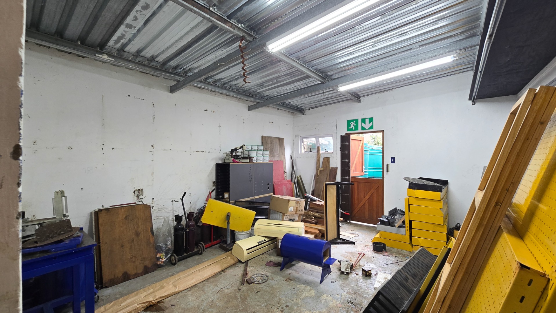 · A separate outbuilding featuring a toilet and two smaller storerooms connected to a generously sized open-plan storage area. This layout creates a seamless space ideally suited for conversion into a self-contained flatlet or spacious studio apartment