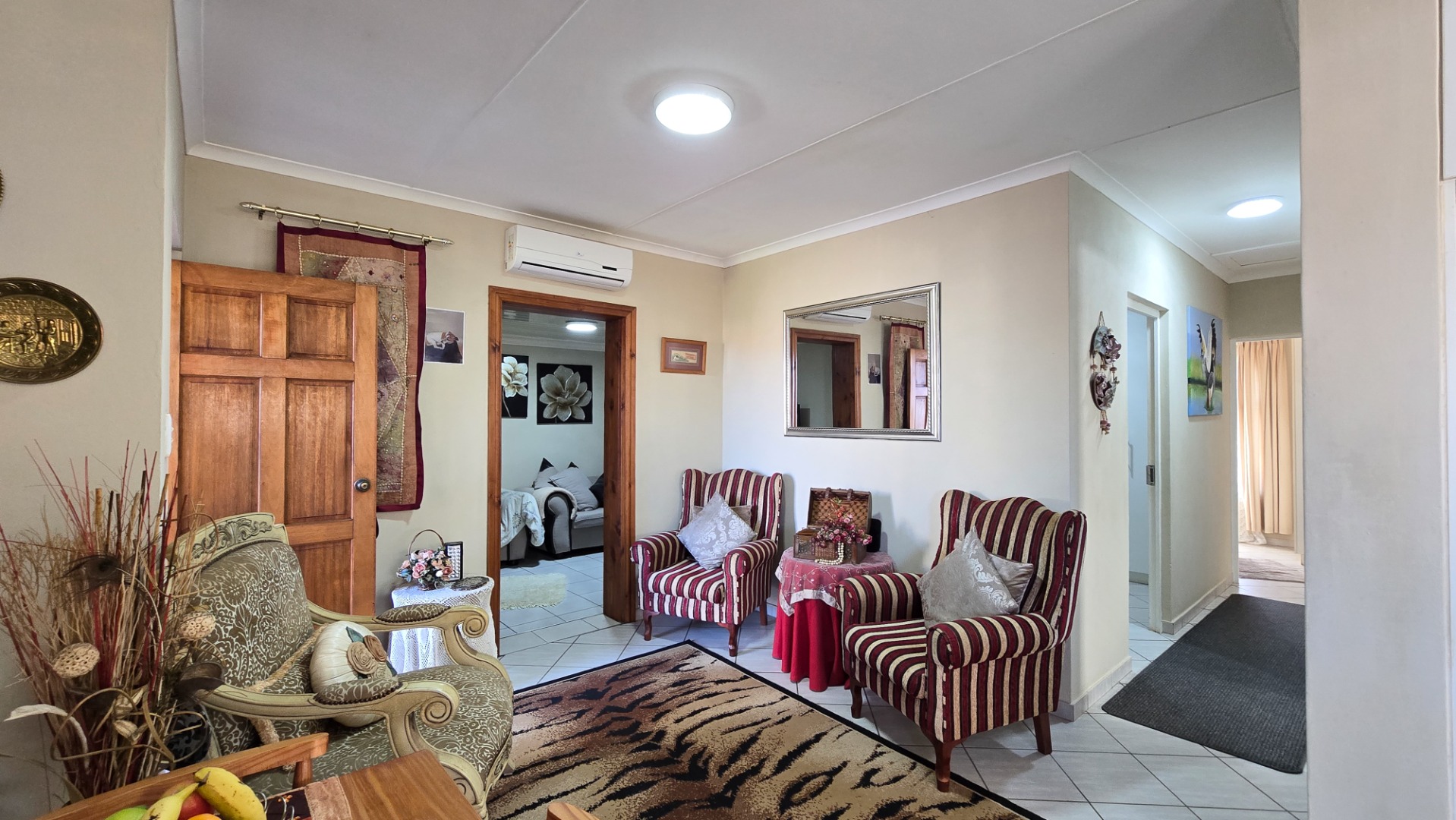 All bedrooms are tiled and feature built-in cupboards, with a built-in linen cupboard located in the passage. The home also includes a small storeroom and an undercover carport, which could easily be converted into a lock-up garage. For added comfort and energy efficiency, the property features a solar geyser, air conditioning in the main bedroom and TV lounge, and is being sold with quality curtains and extra bathroom fittings and décor.