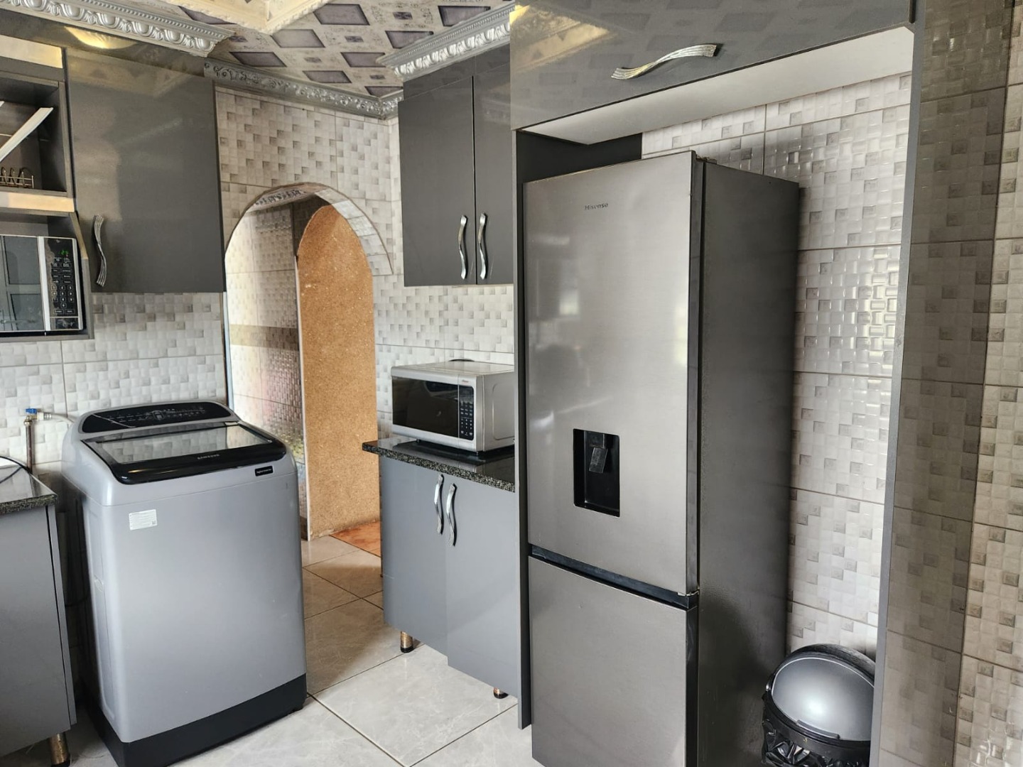The home features a beautiful kitchen with ample space for a double-door fridge and plumbing for two appliances, including a washing machine and dishwasher. The spacious main bedroom serves as a private retreat, complete with a stylish ensuite bathroom with plenty of storage space. A separate guest bathroom with a toilet adds convenience for family and visitors.