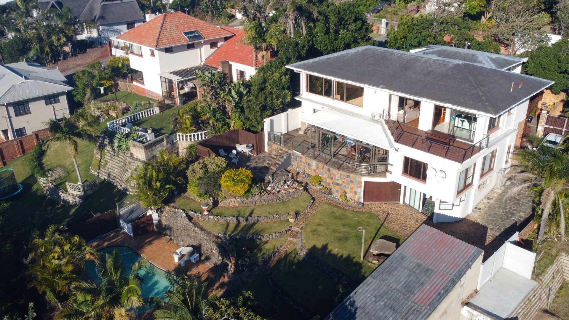 Set on a generous erf, the home is currently configured as three independent dwellings, offering exceptional versatility for extended family living, income generation, or work-from-home solutions.