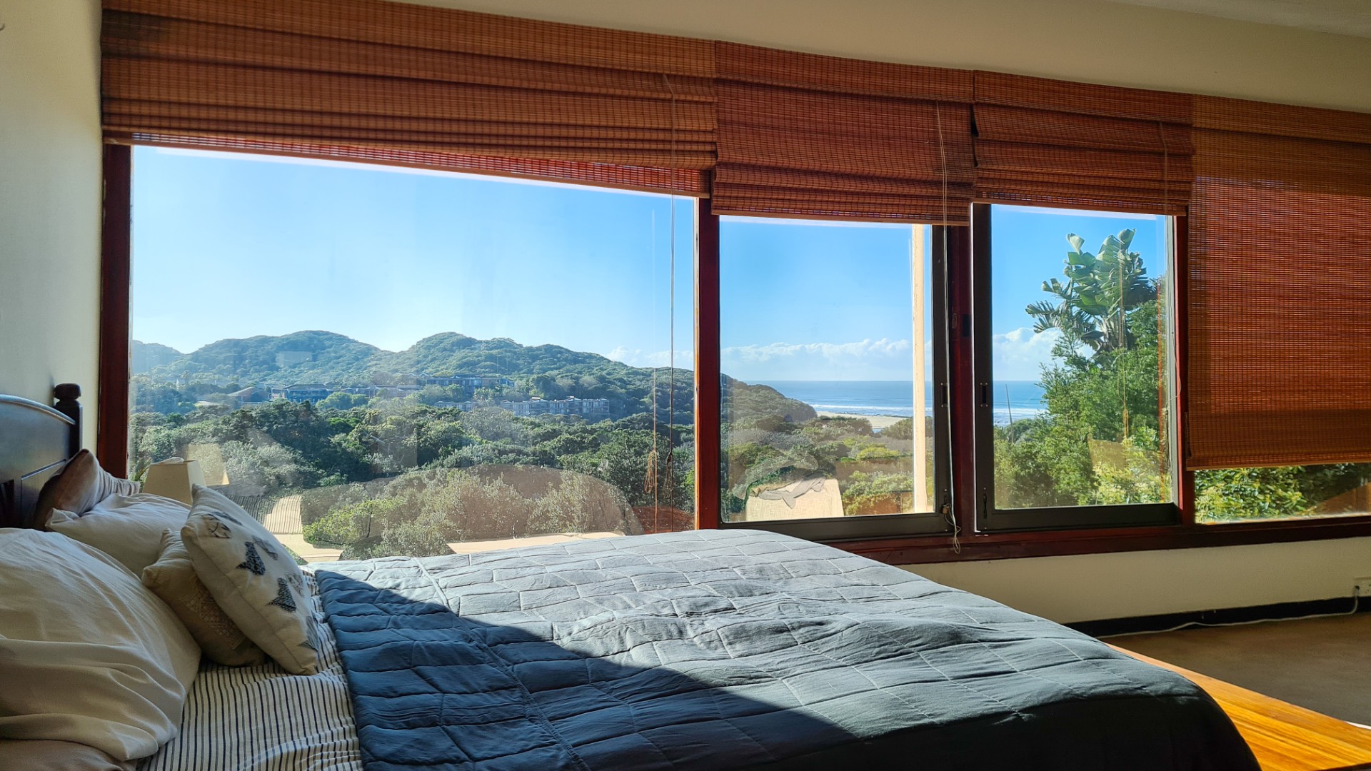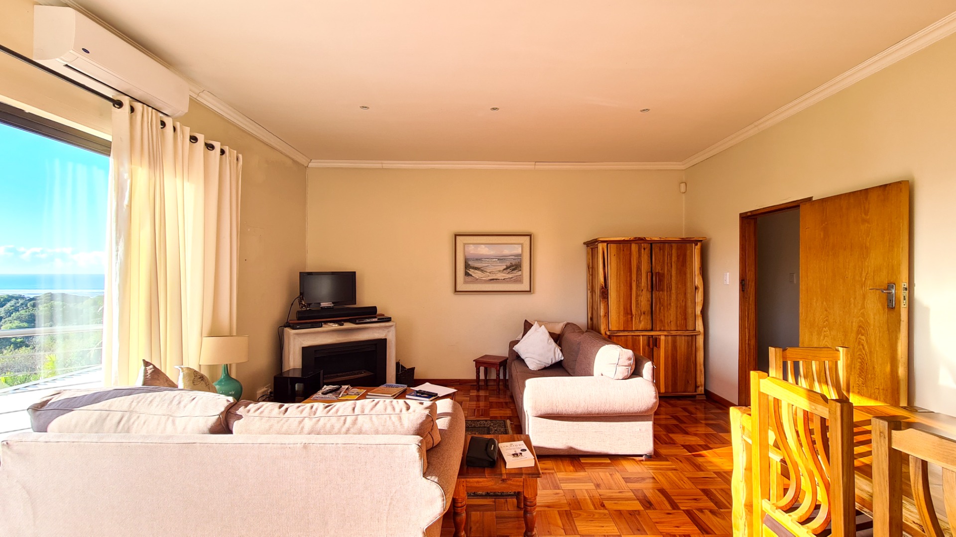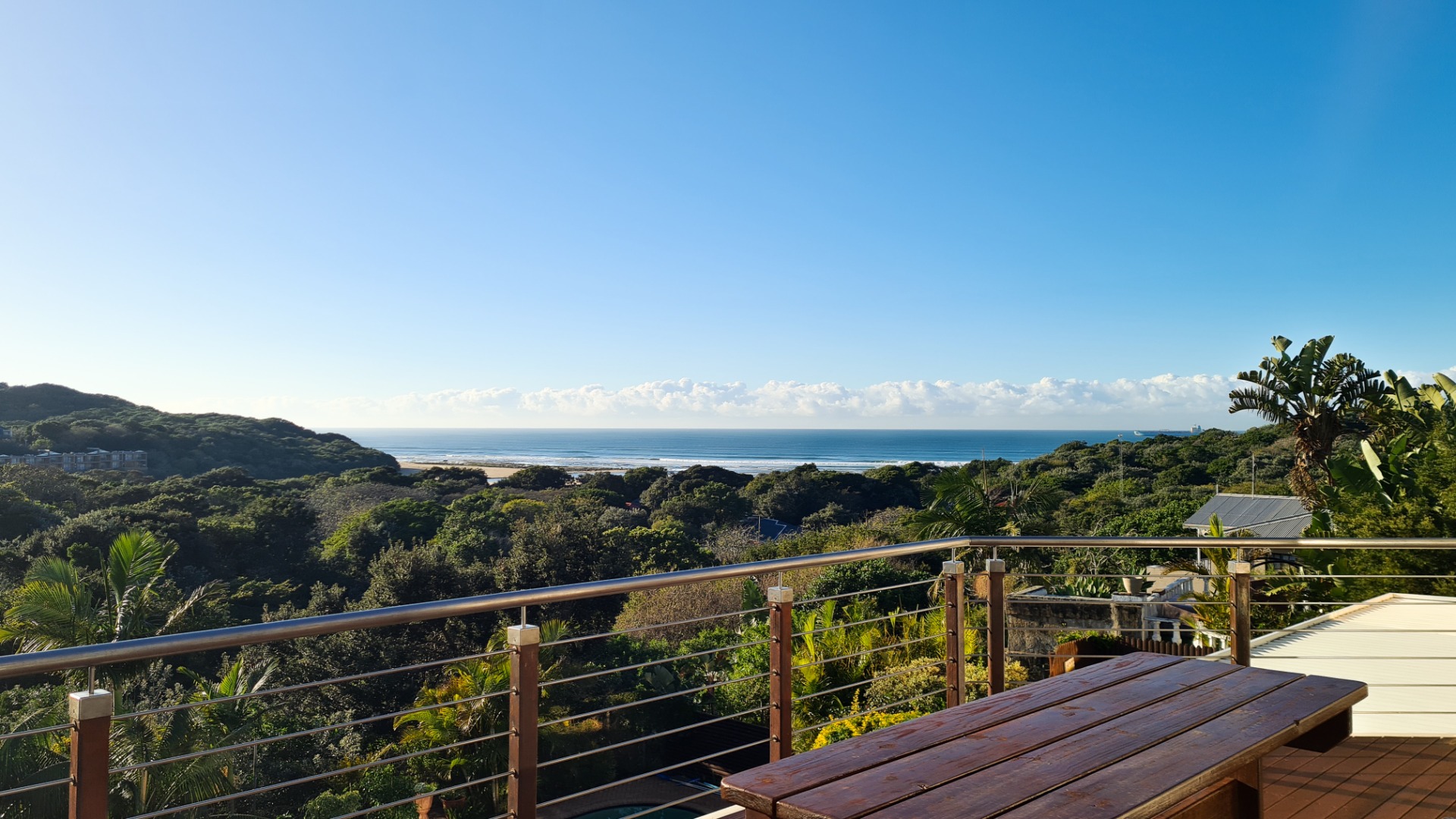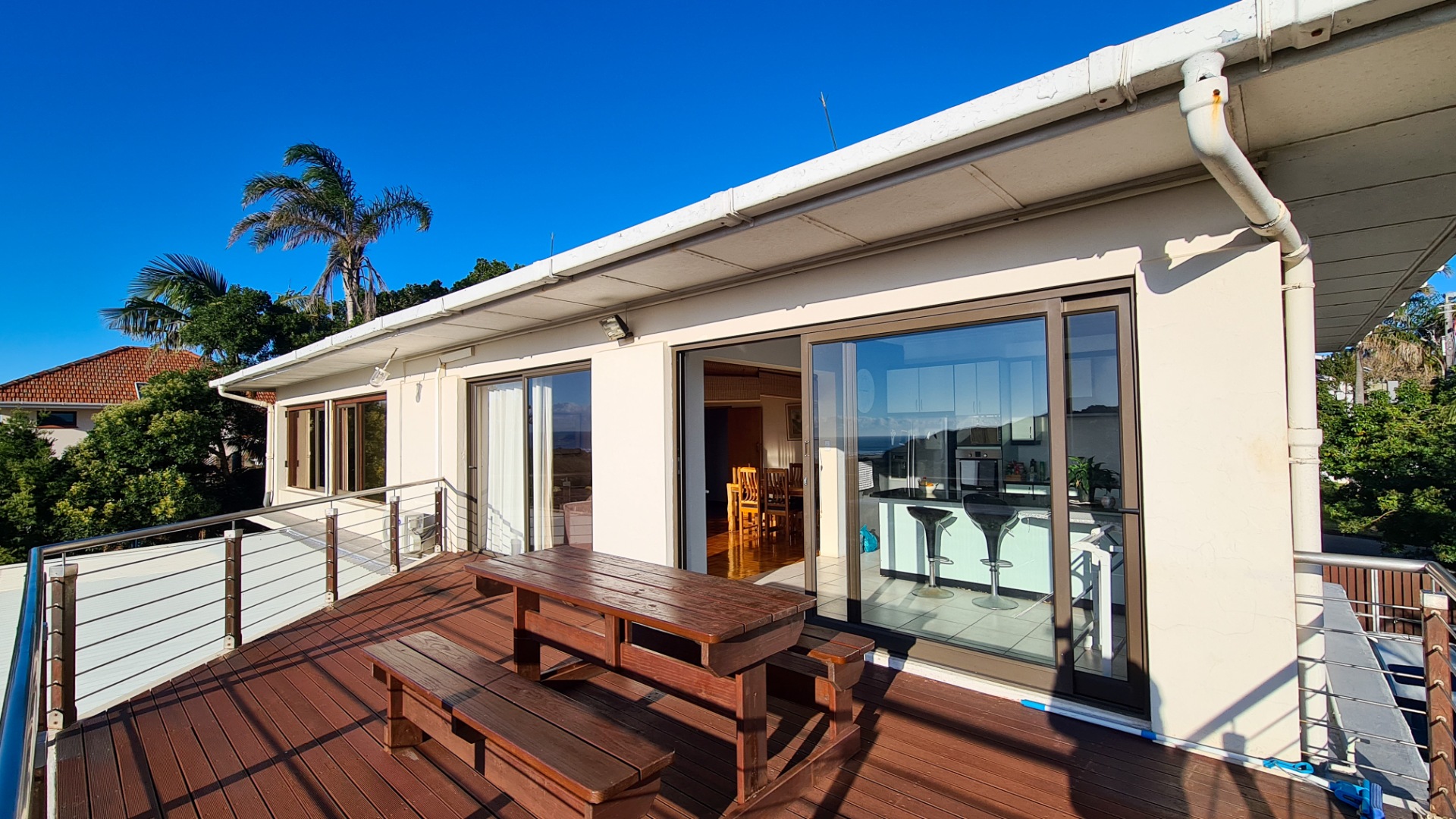 Upstairs, you’ll find two generous bedrooms, two bathrooms, and a stylish open-plan kitchen and lounge. The beautiful parquet flooring continues here, complemented by a spectacular viewing deck—the perfect spot to soak in those iconic Nahoon vistas. The upper and lower levels can easily be reconnected by reopening an existing internal staircase.