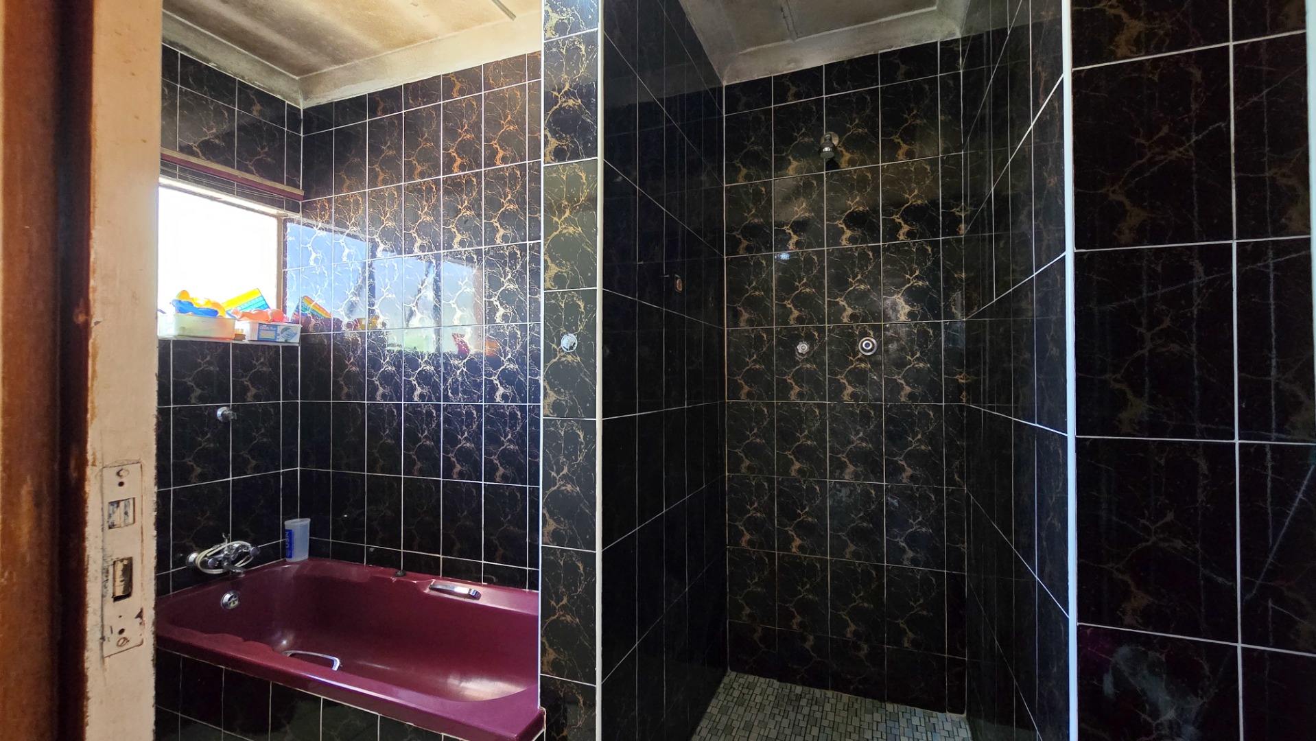 The property features three bedrooms, all fitted with built-in cupboards, and one bathroom equipped with a Shower, bath, toilet, and basin.