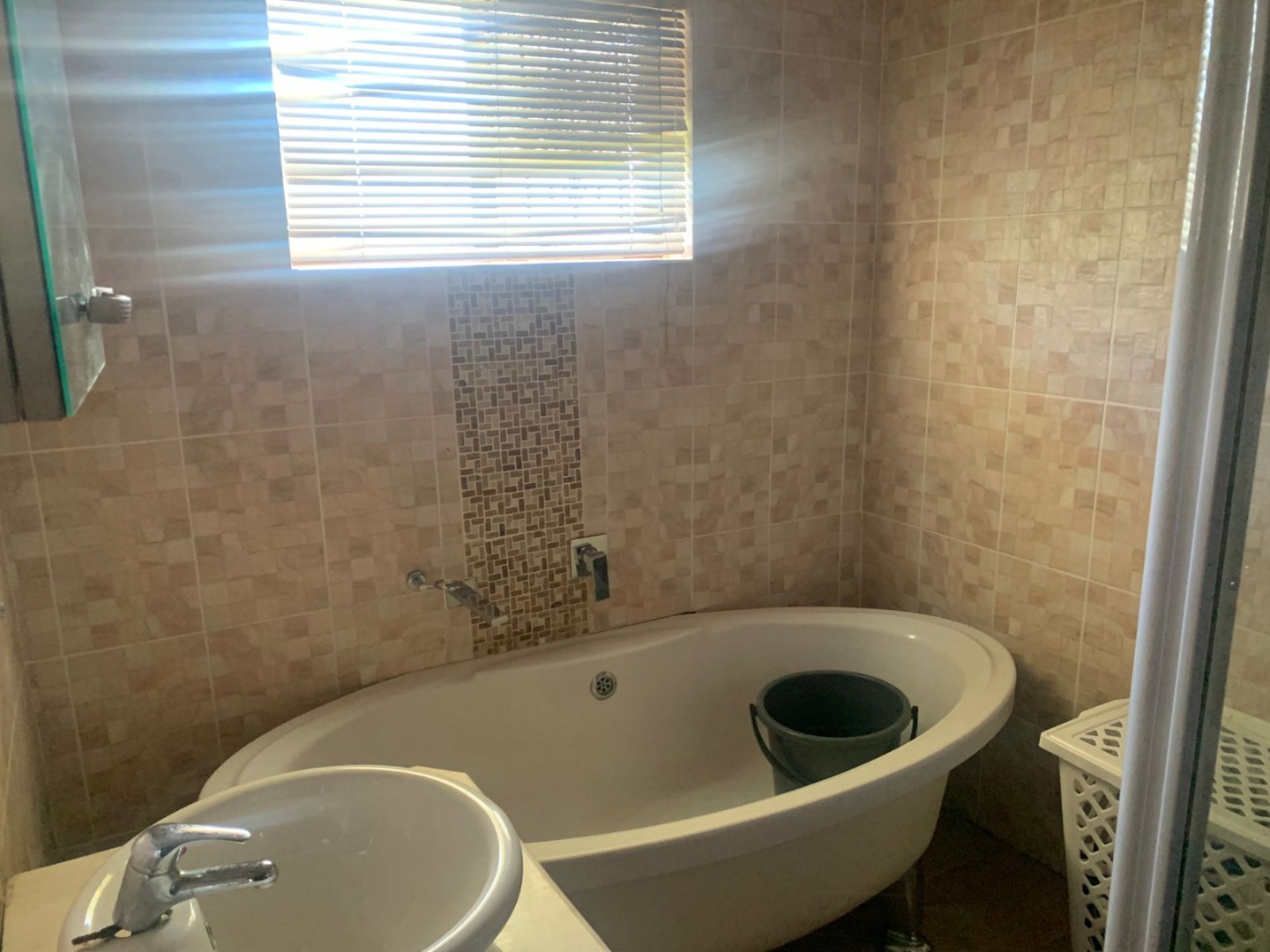 Externally, the property boasts a large paved driveway capable of accommodating up to six vehicles, in addition to two garages, ensuring ample parking. The expansive garden area and a built-in braai facility offer outdoor living and entertainment possibilities. Security is enhanced with an alarm system, access gate, burglar bars, and a fully walled perimeter, providing peace of mind. Located in Summerpride, this home benefits from a suburban setting, offering a blend of community living and convenience.
