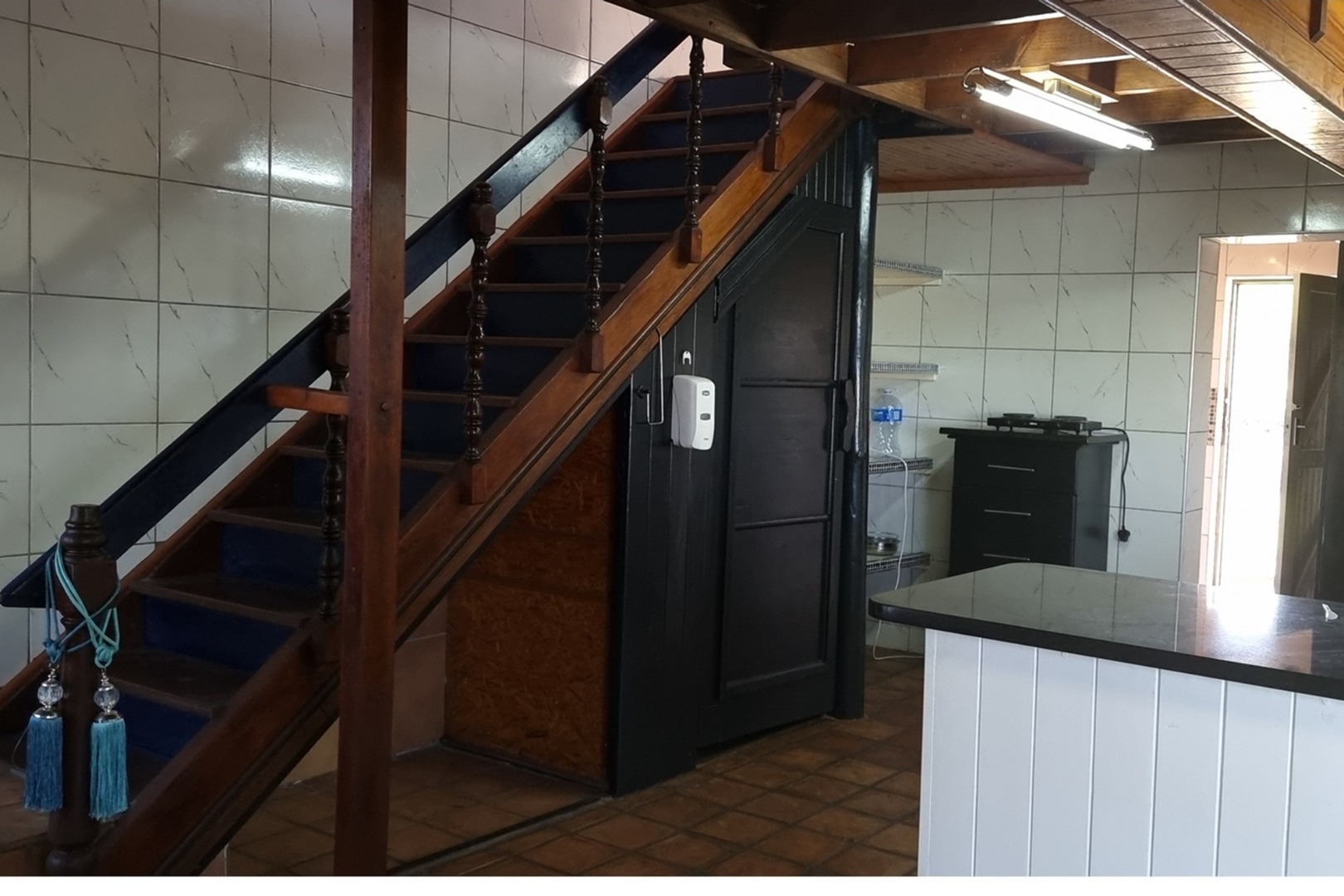 The spacious kitchen comes equipped with a gas stove ample counter and storage space, and a pantry under the stairs that maximizes room efficiency.