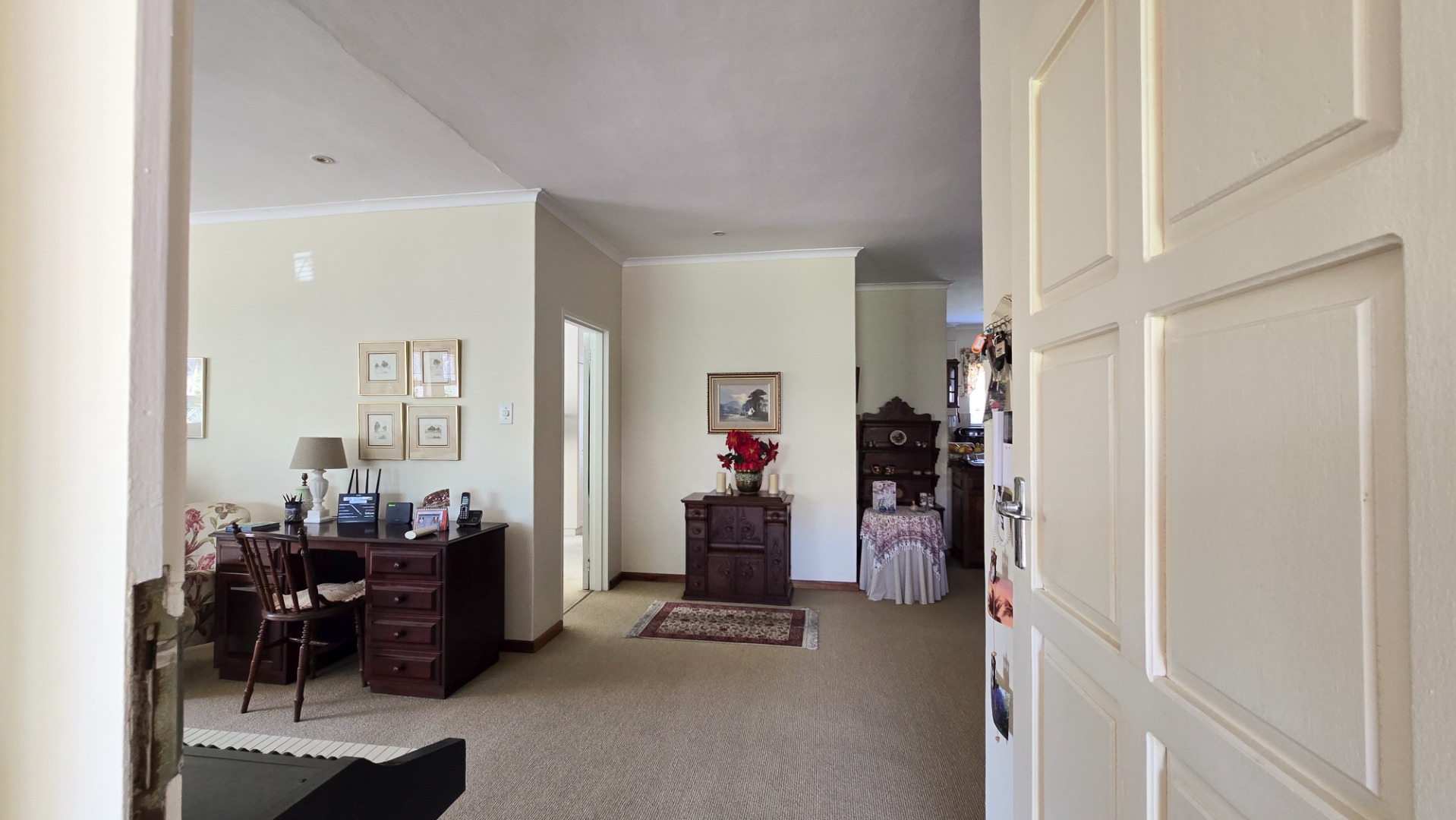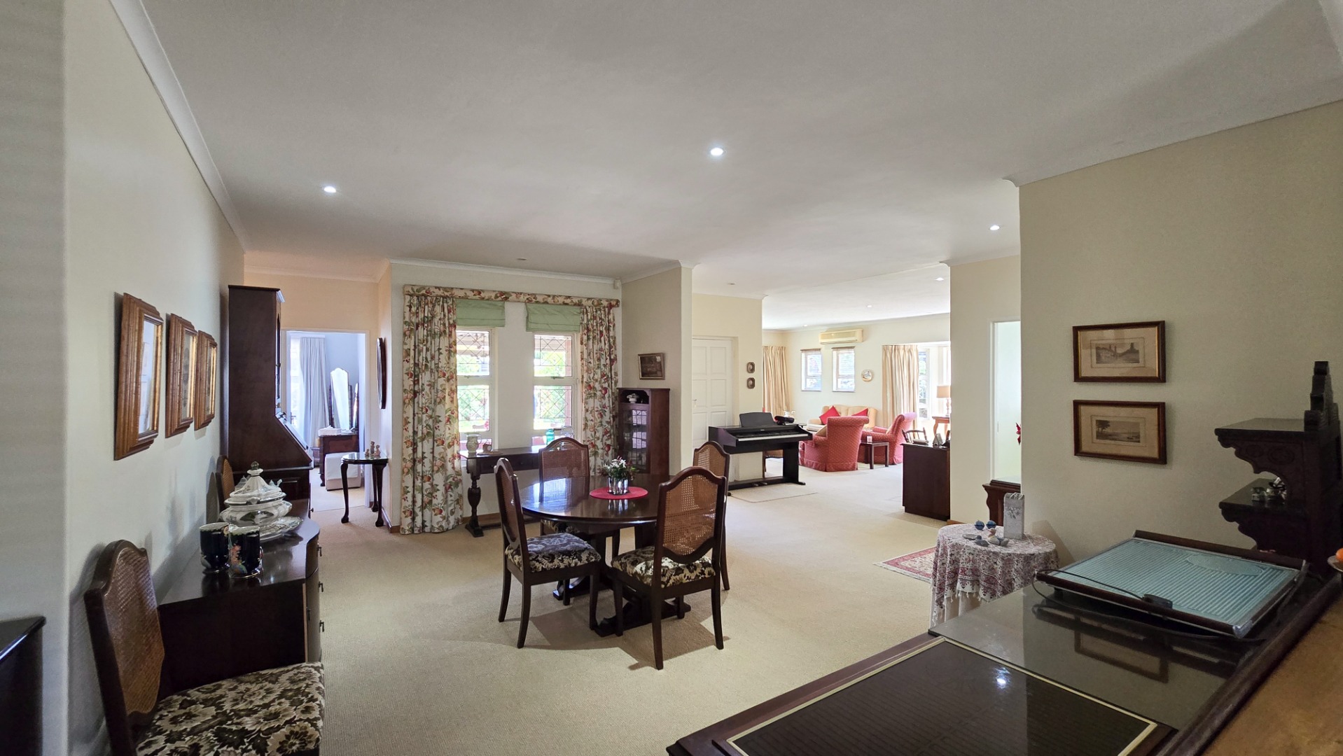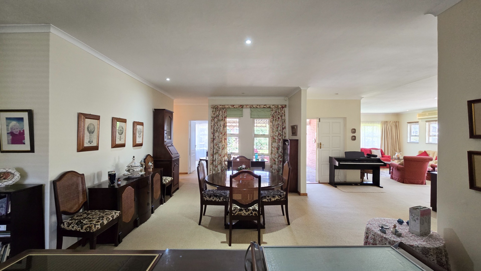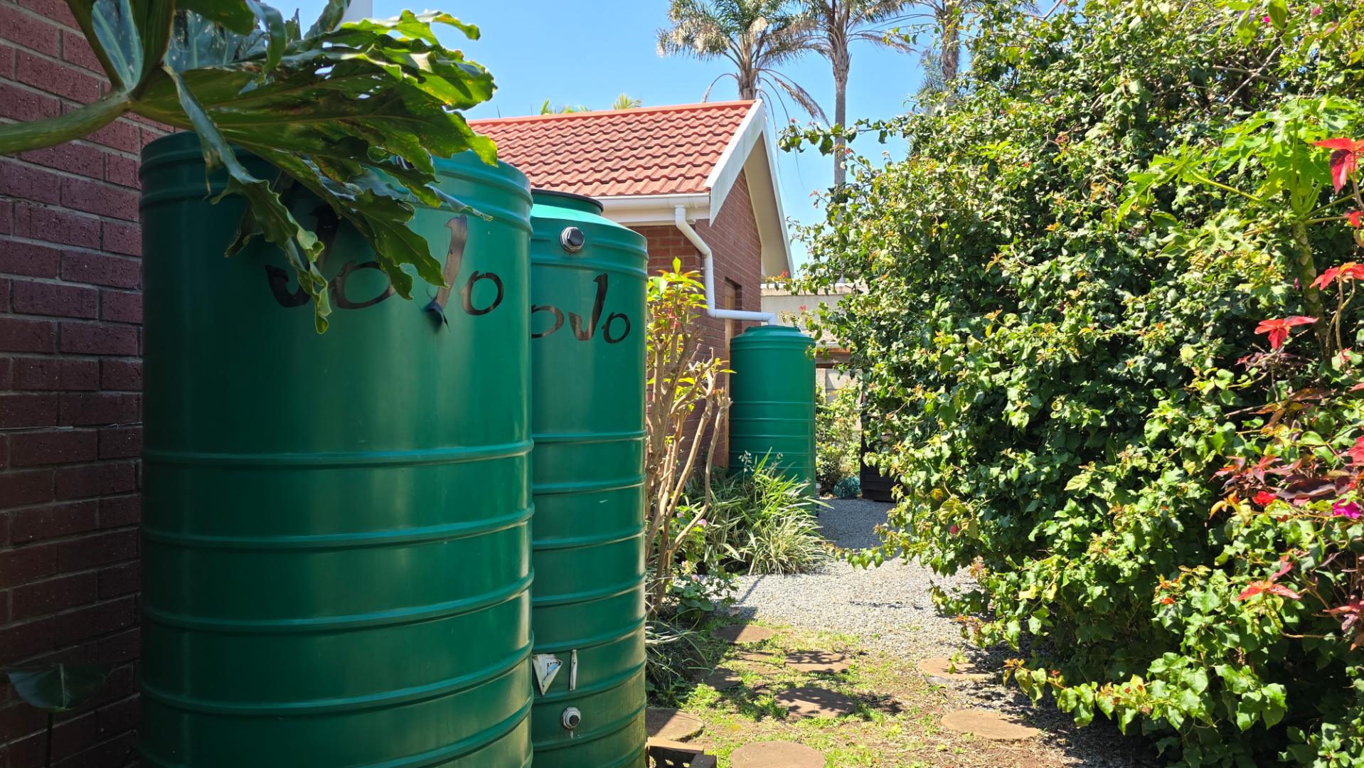 Inside, you'll find a spacious lounge, a dedicated dining room, and a well-fitted kitchen with ample cabinetry, plus a separate laundry area. The main bedroom is air-conditioned, and a solar geyser keeps utility bills low. A built-in inverter ensures you're covered during power outages, and four water tanks provide a reliable backup water supply.