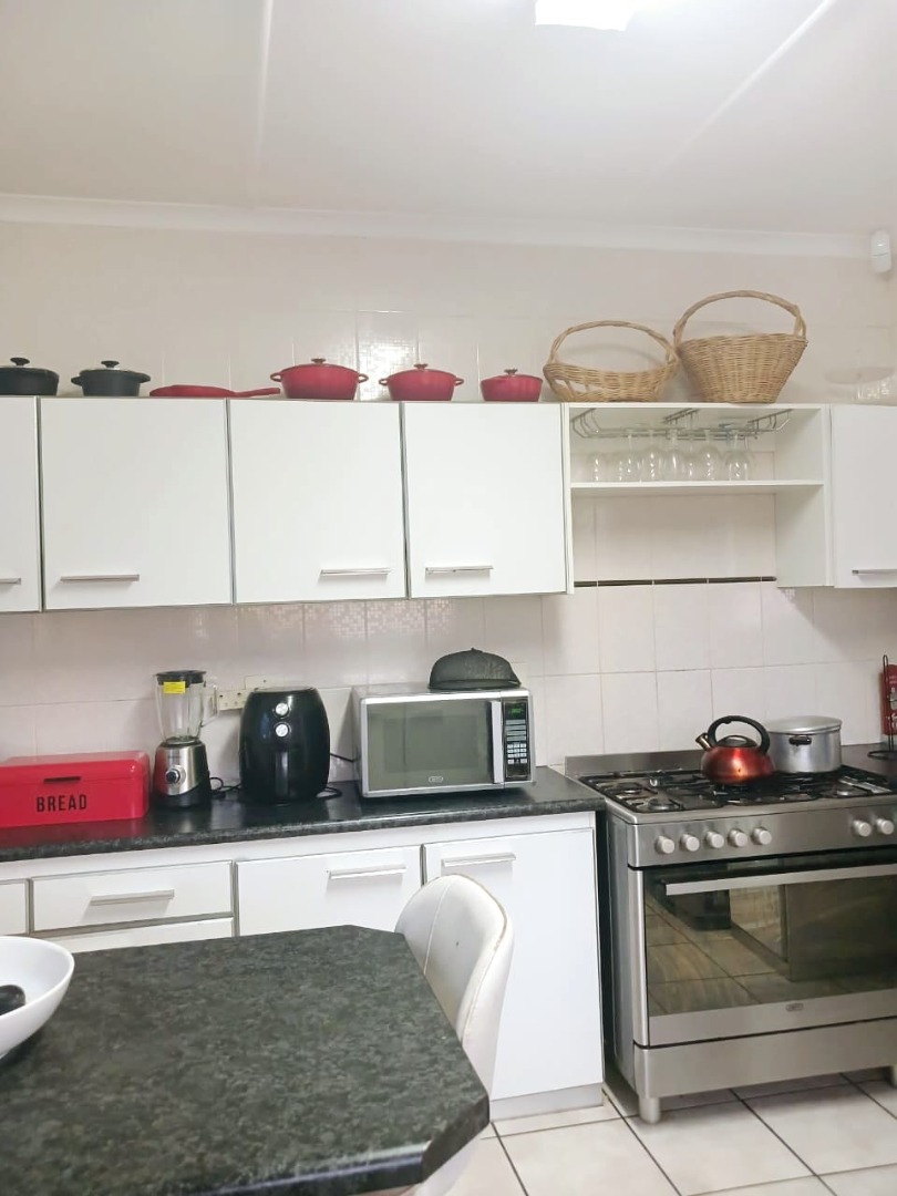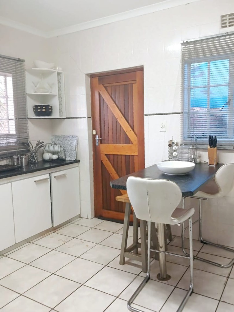 This versatile property offers space, comfort, and great outdoor living! The main house features 3 well-sized bedrooms with built-in cupboards, a full family bathroom, and a main ensuite. Living areas include a spacious lounge with double doors that open onto a covered deck – complete with a built-in braai and bar – perfect for entertaining while overlooking the lush, private backyard. A separate dining room and fitted kitchen complete the home’s warm, family-friendly layout.