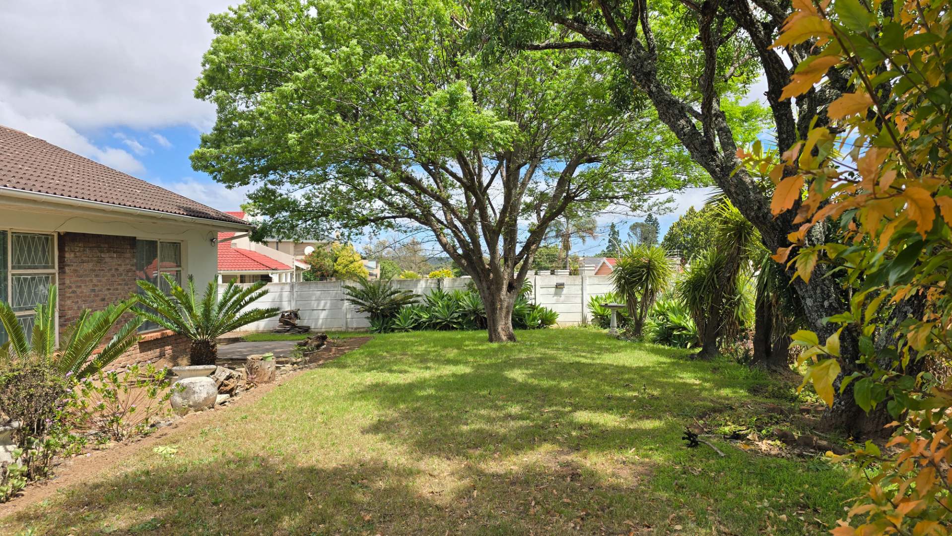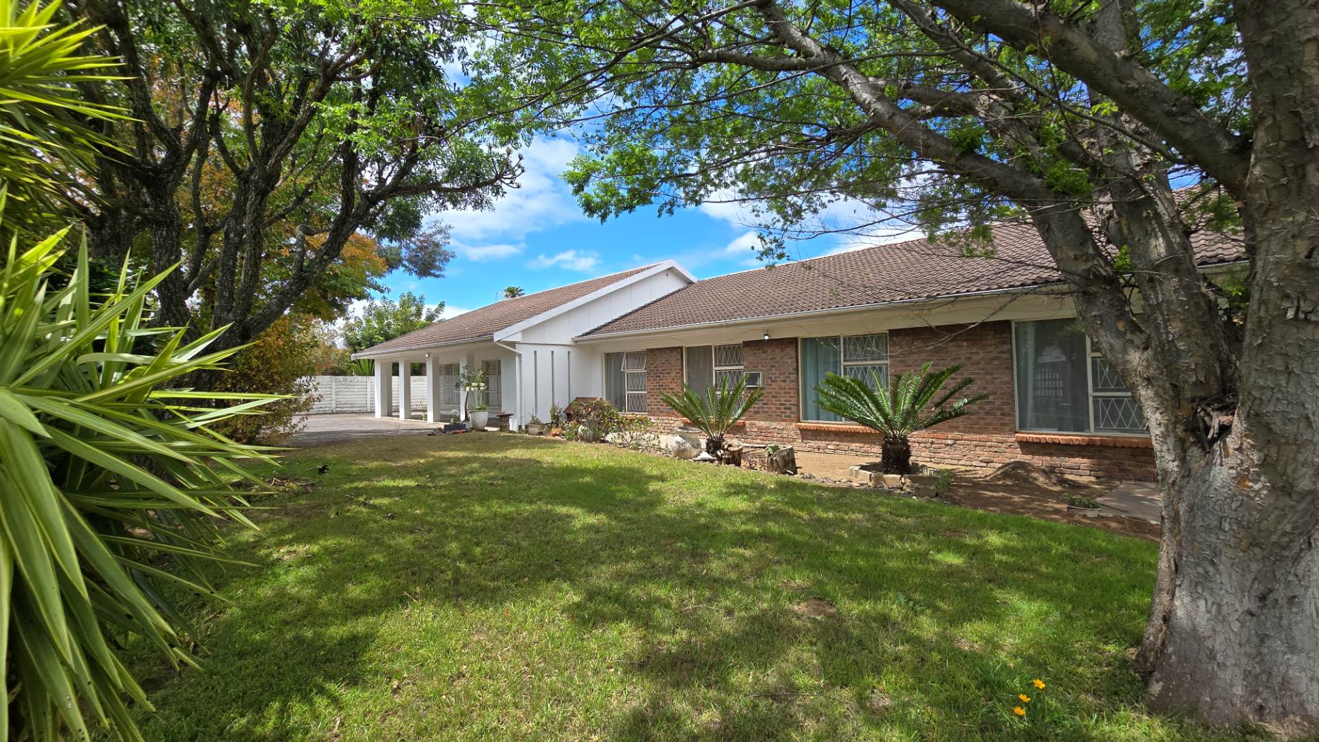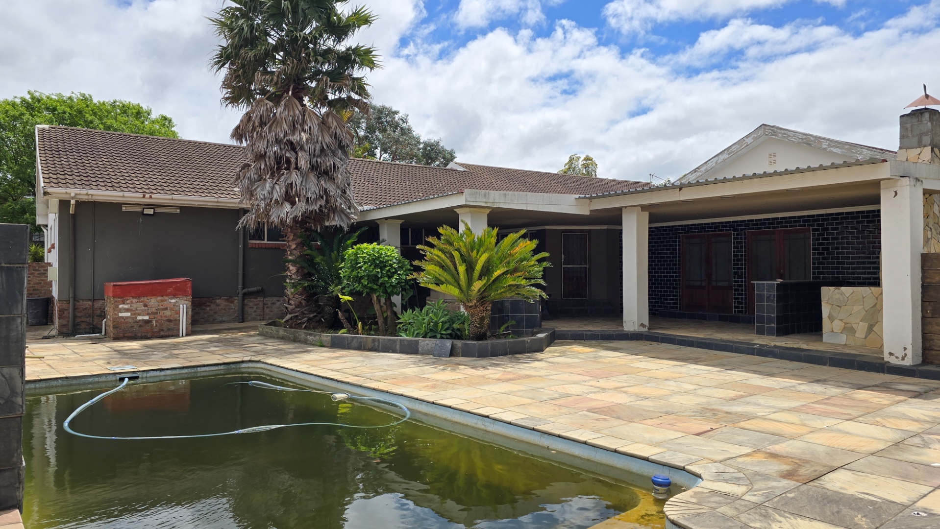 The home offers four generous bedrooms and three modern bathrooms, along with exceptional entertainment spaces — two large indoor areas, two covered outdoor patios, a dedicated braai area, and a sparkling swimming pool, all set within a beautifully landscaped garden.