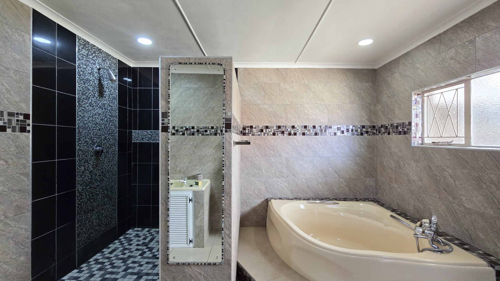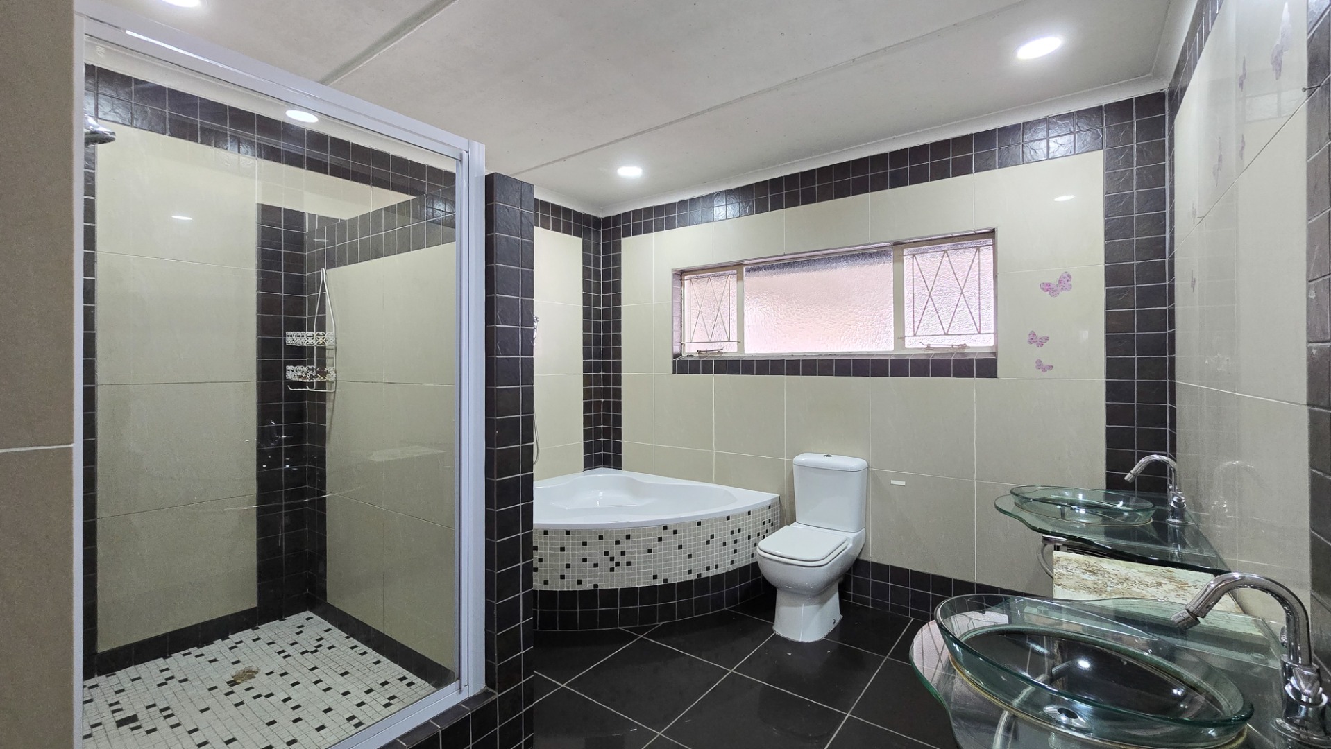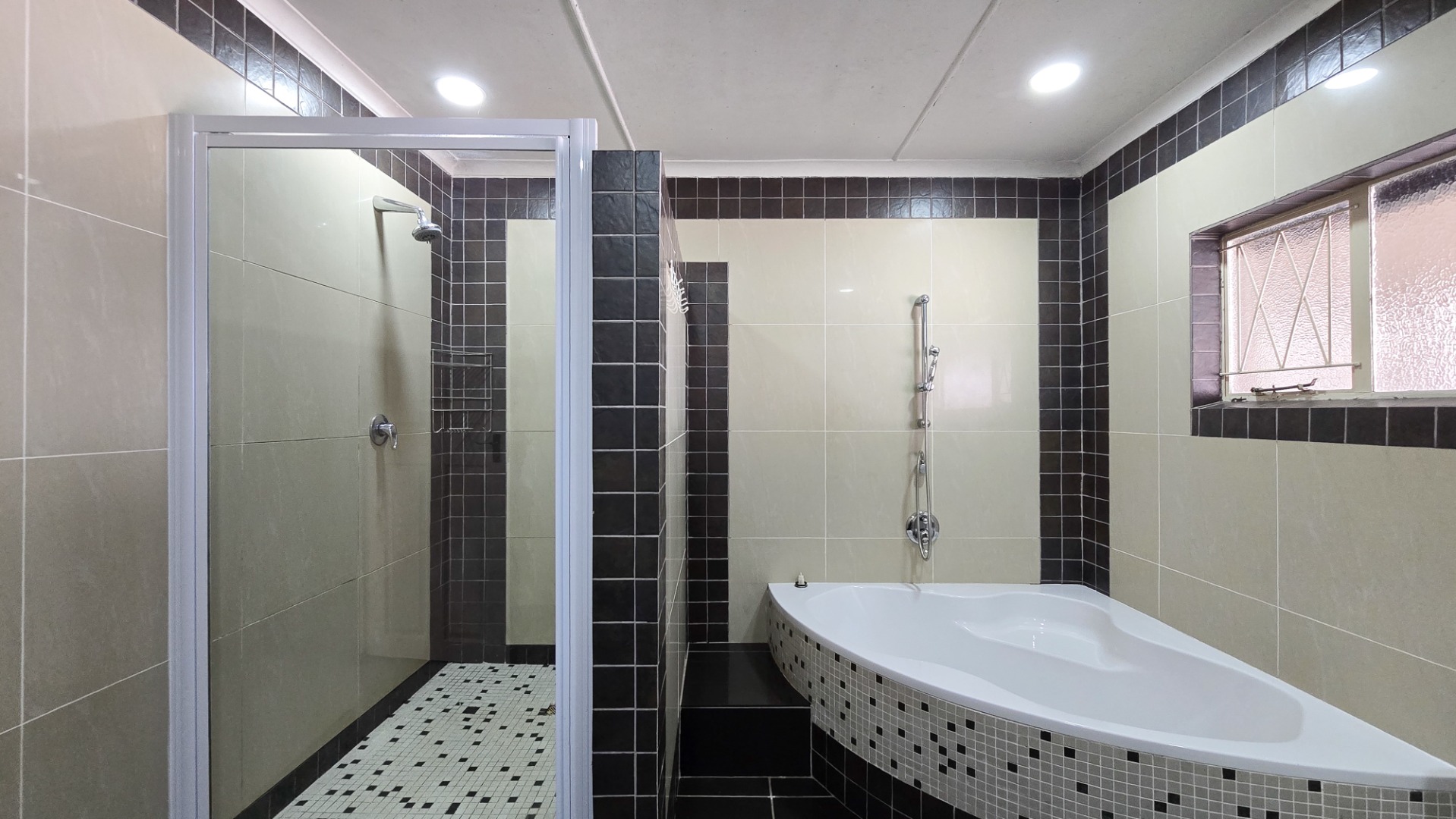 The home offers four generous bedrooms and three modern bathrooms, along with exceptional entertainment spaces — two large indoor areas, two covered outdoor patios, a dedicated braai area, and a sparkling swimming pool, all set within a beautifully landscaped garden.