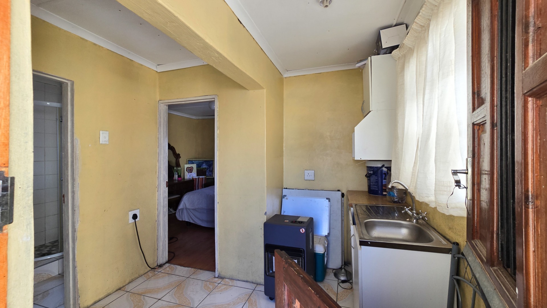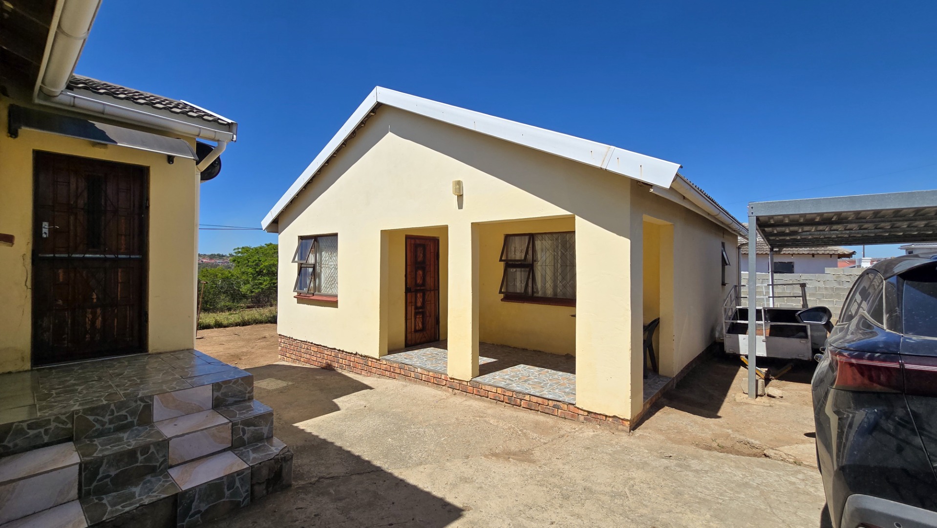 The main house features two well-sized bedrooms and a modern bathroom, designed to cater to the needs of a growing family or first-time buyers. The fully functional kitchen offers ample cupboard space and flows seamlessly into a cozy lounge, creating a warm and inviting atmosphere for everyday living.