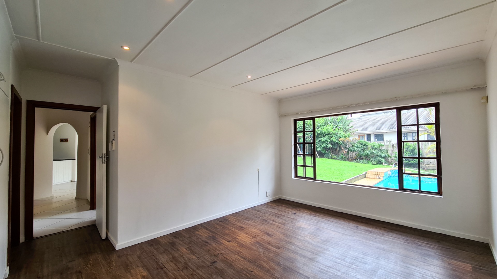 Garden with double garage parking, outside laundry's room and toilet, Built-in braai area and swimming pool.