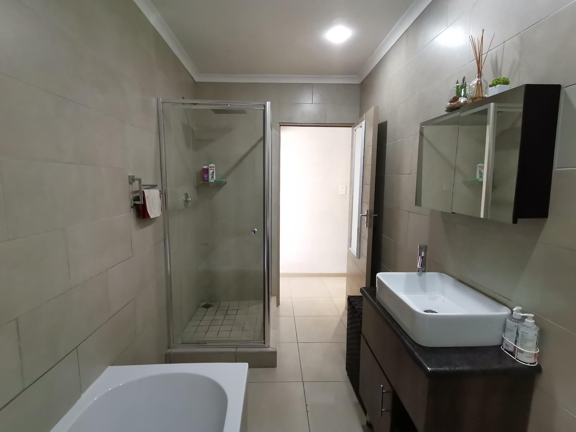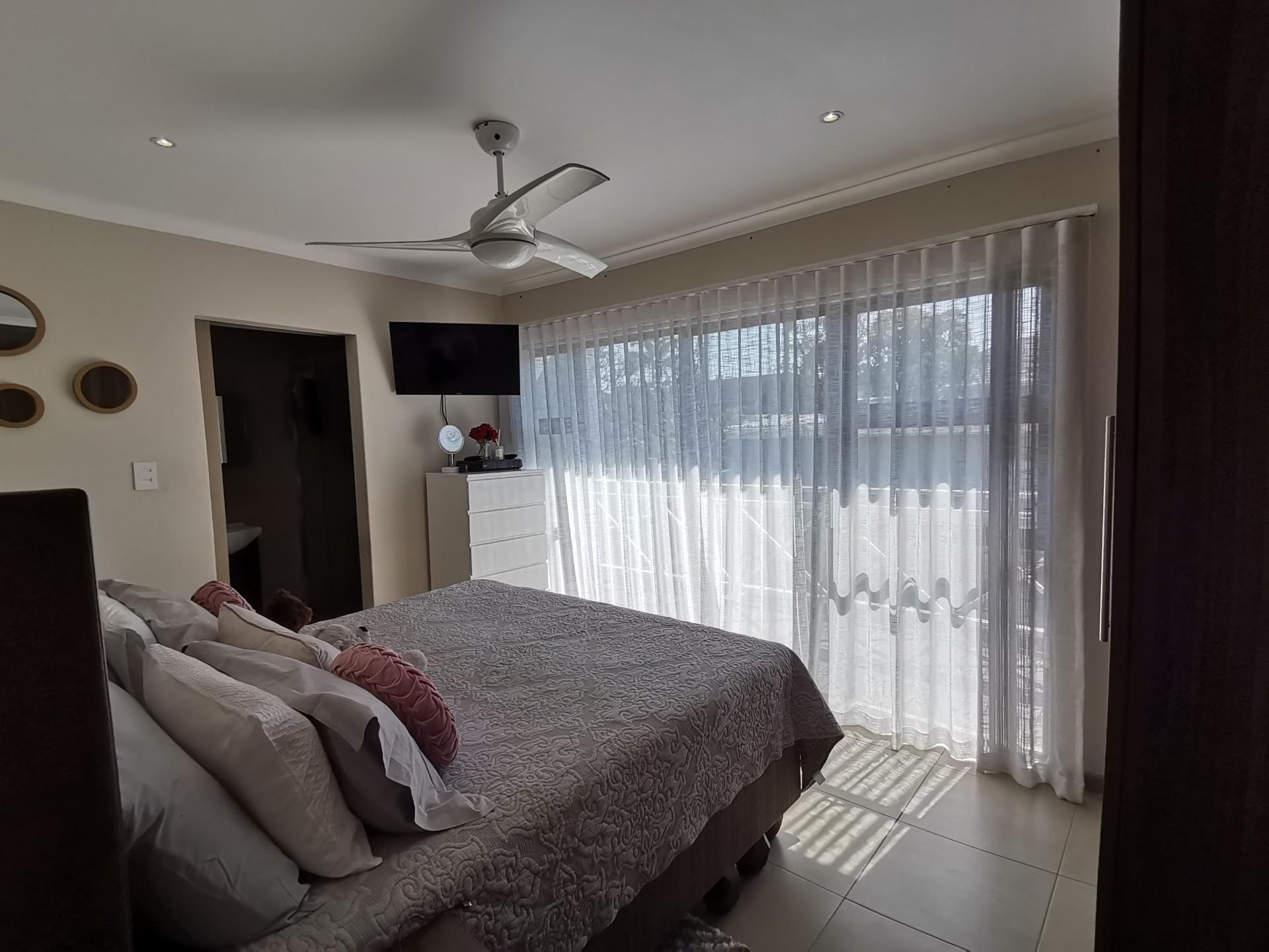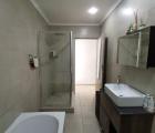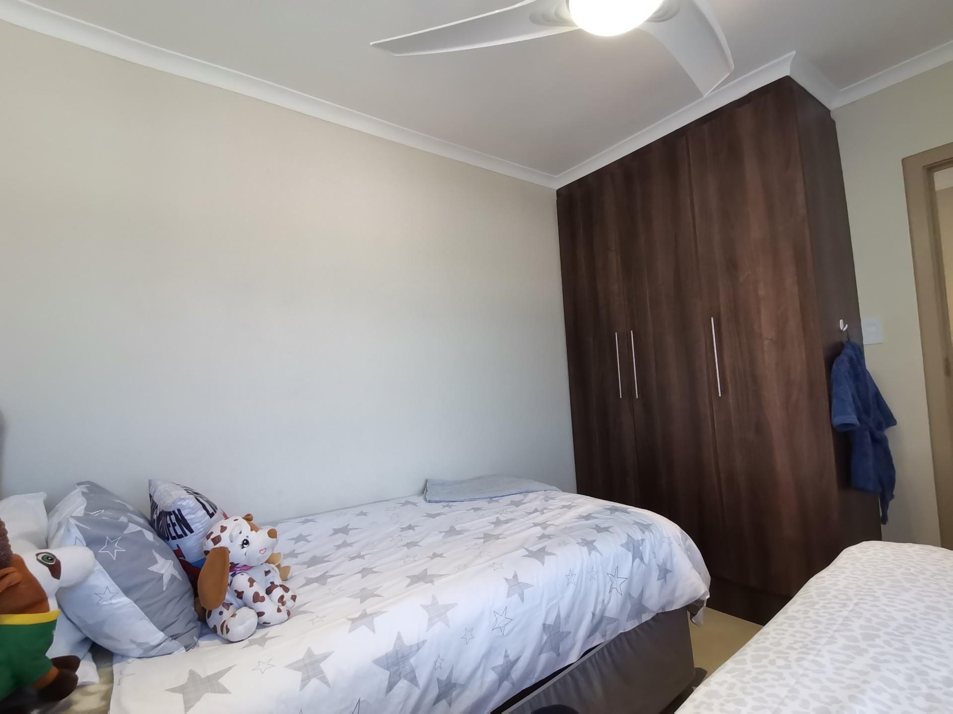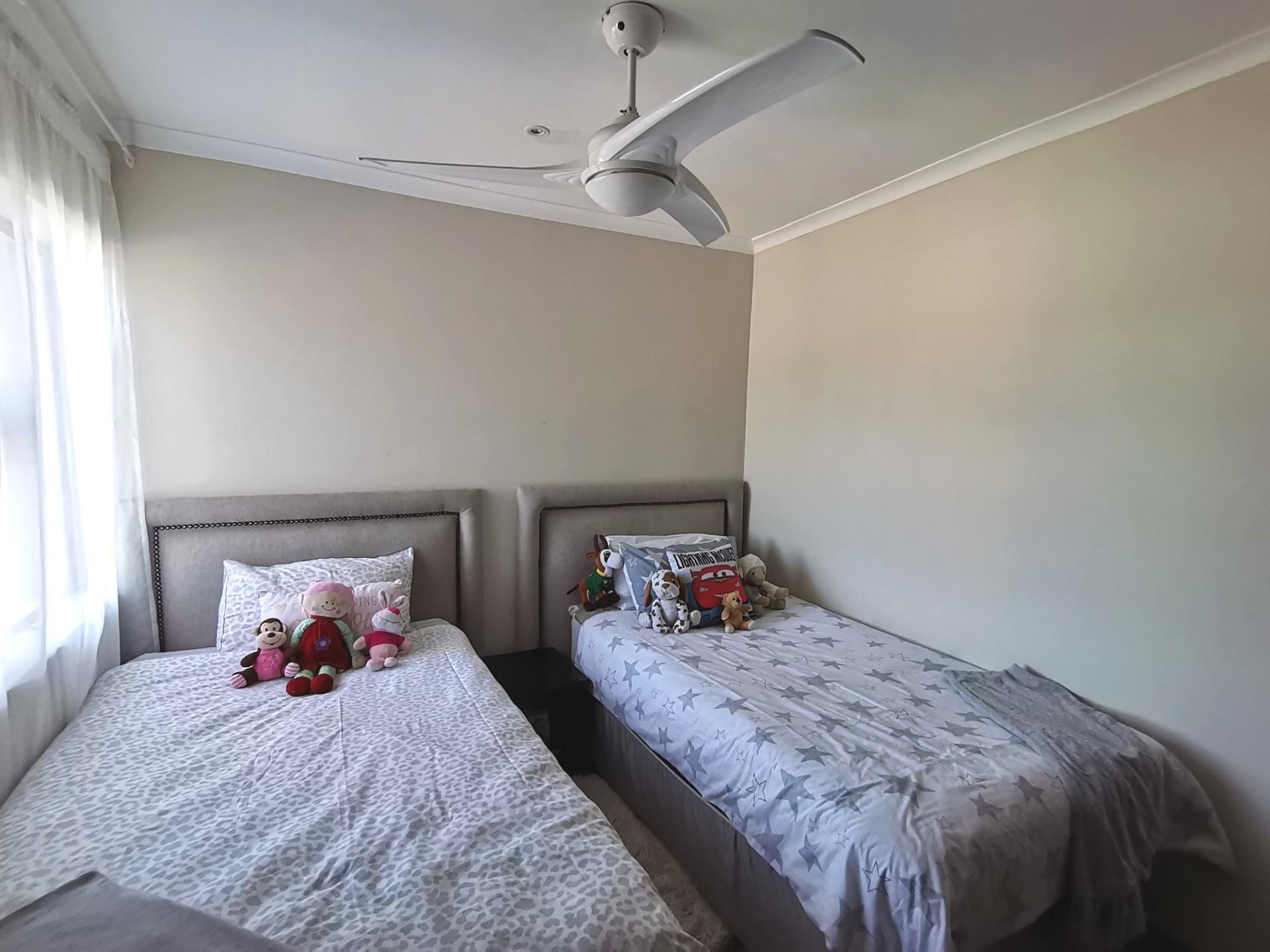Upstairs consists of 3 bedrooms, all with built in cupboards. The family bathroom has a bath, shower and toilet. The en-suite has a shower toilet and basin. The main bedroom has a private balcony.