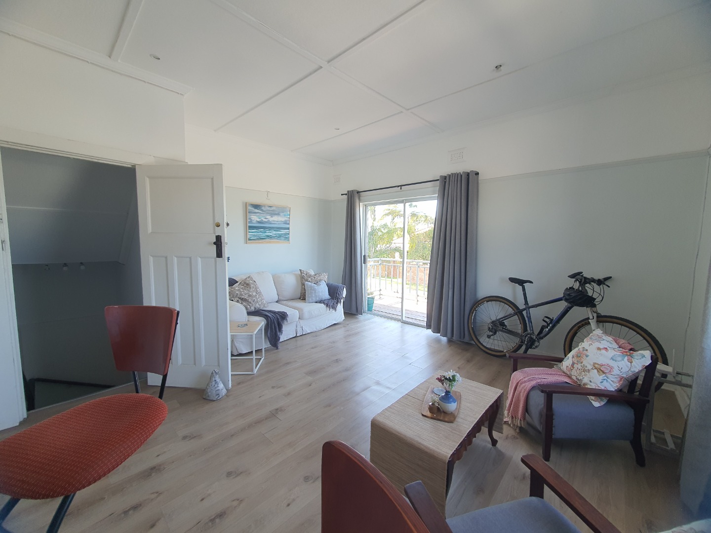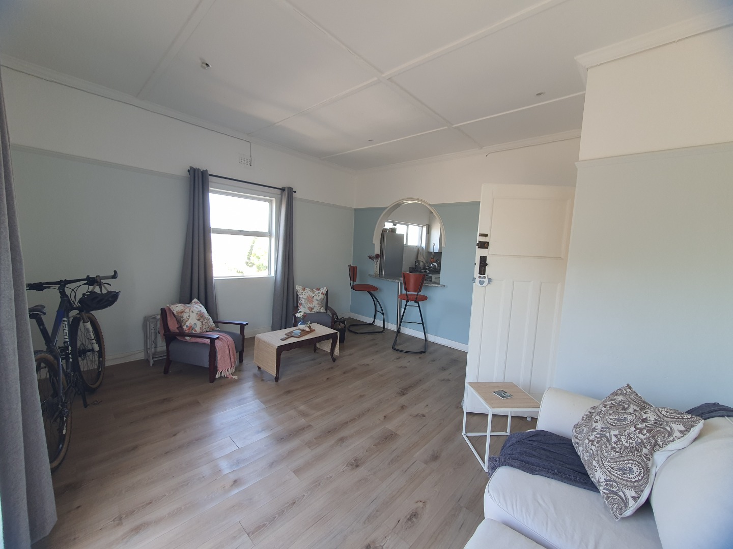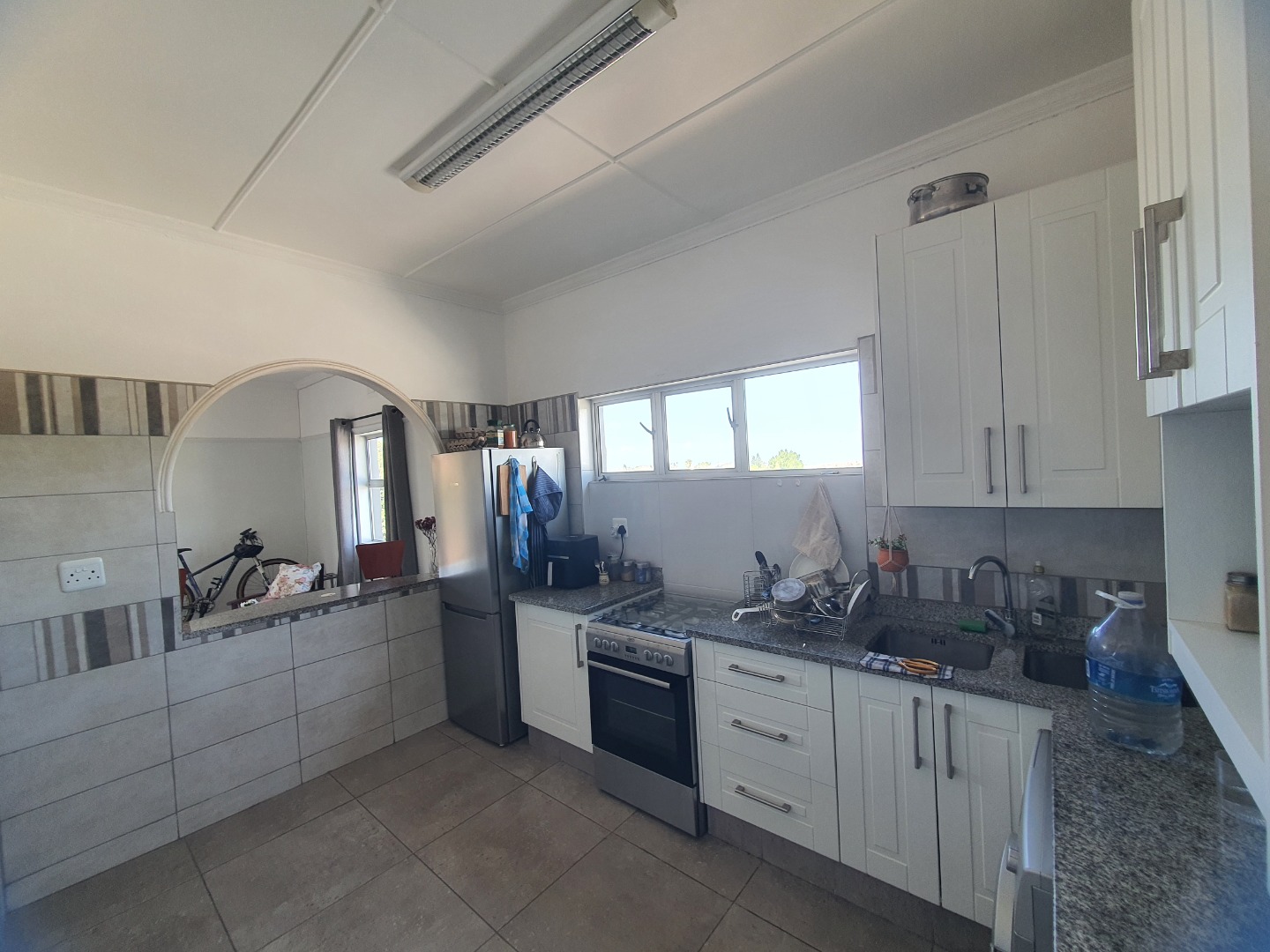 2 Bedrooms with built in cupboards and a bathroom with a shower only. Sitting area and a kitchen with a gas stove top and electrical oven.