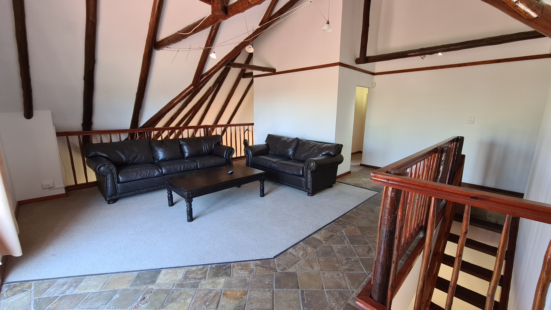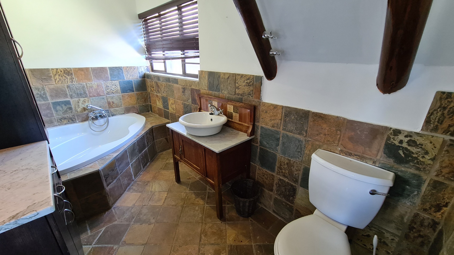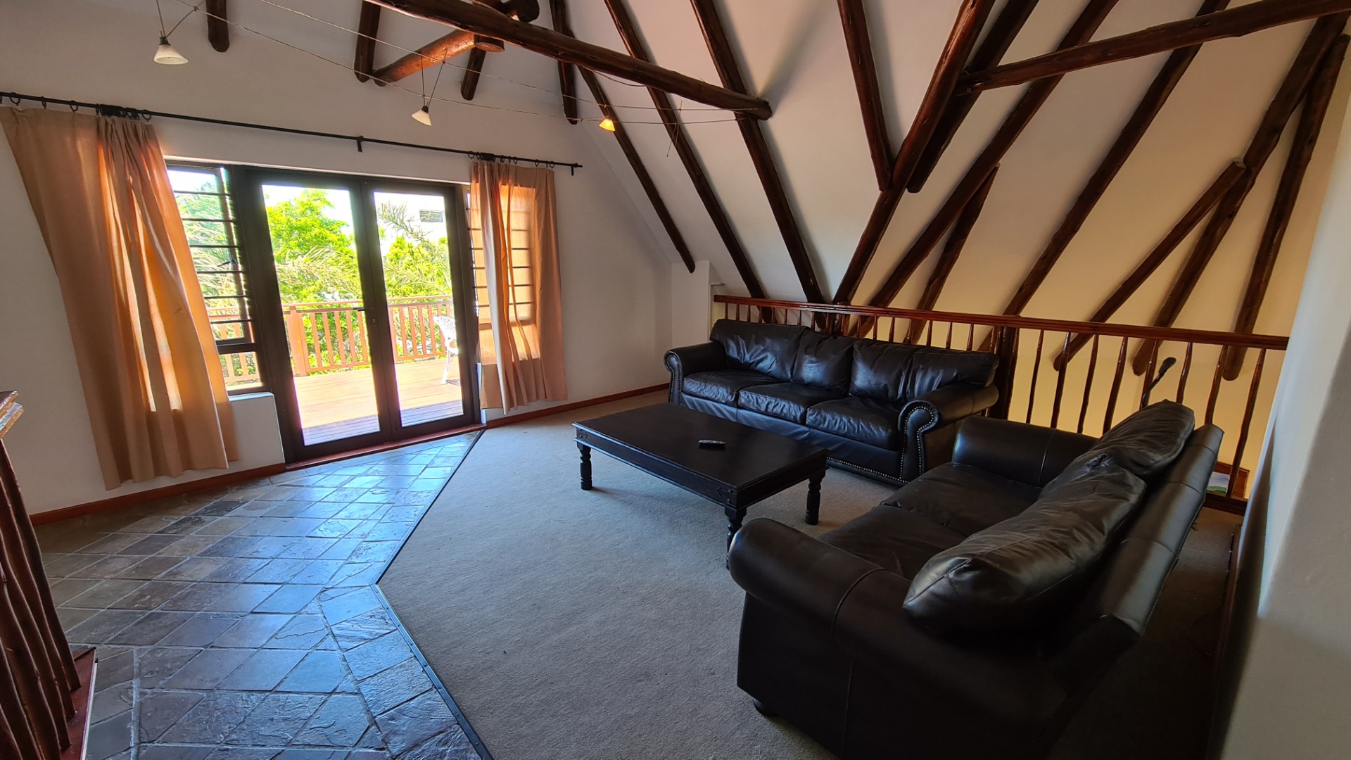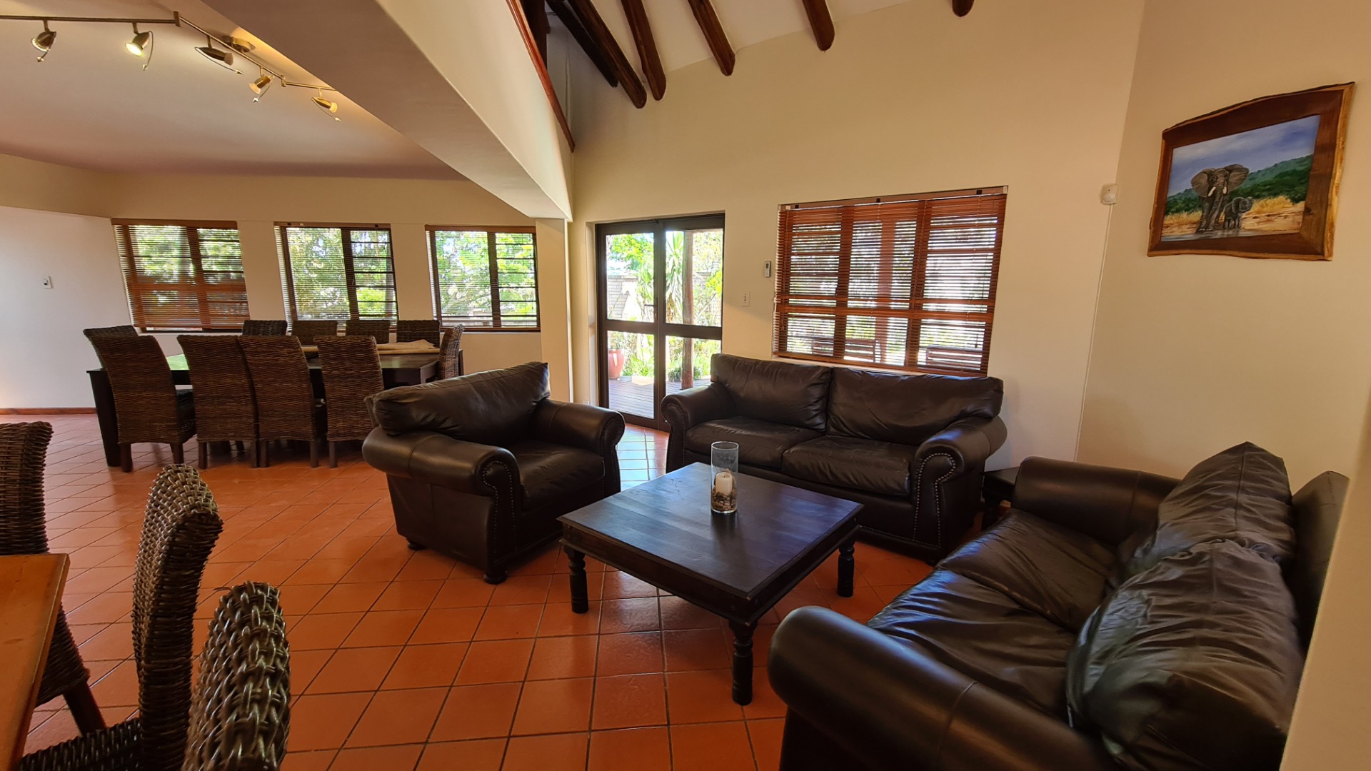 This 6 bedroom home is available to rent. Downstairs consists of an open plan lounge leading out onto an undercover braai area and a sparkling pool, dining area and kitchen. There is a guest toilet, and two bedrooms both with en-suite bathrooms.