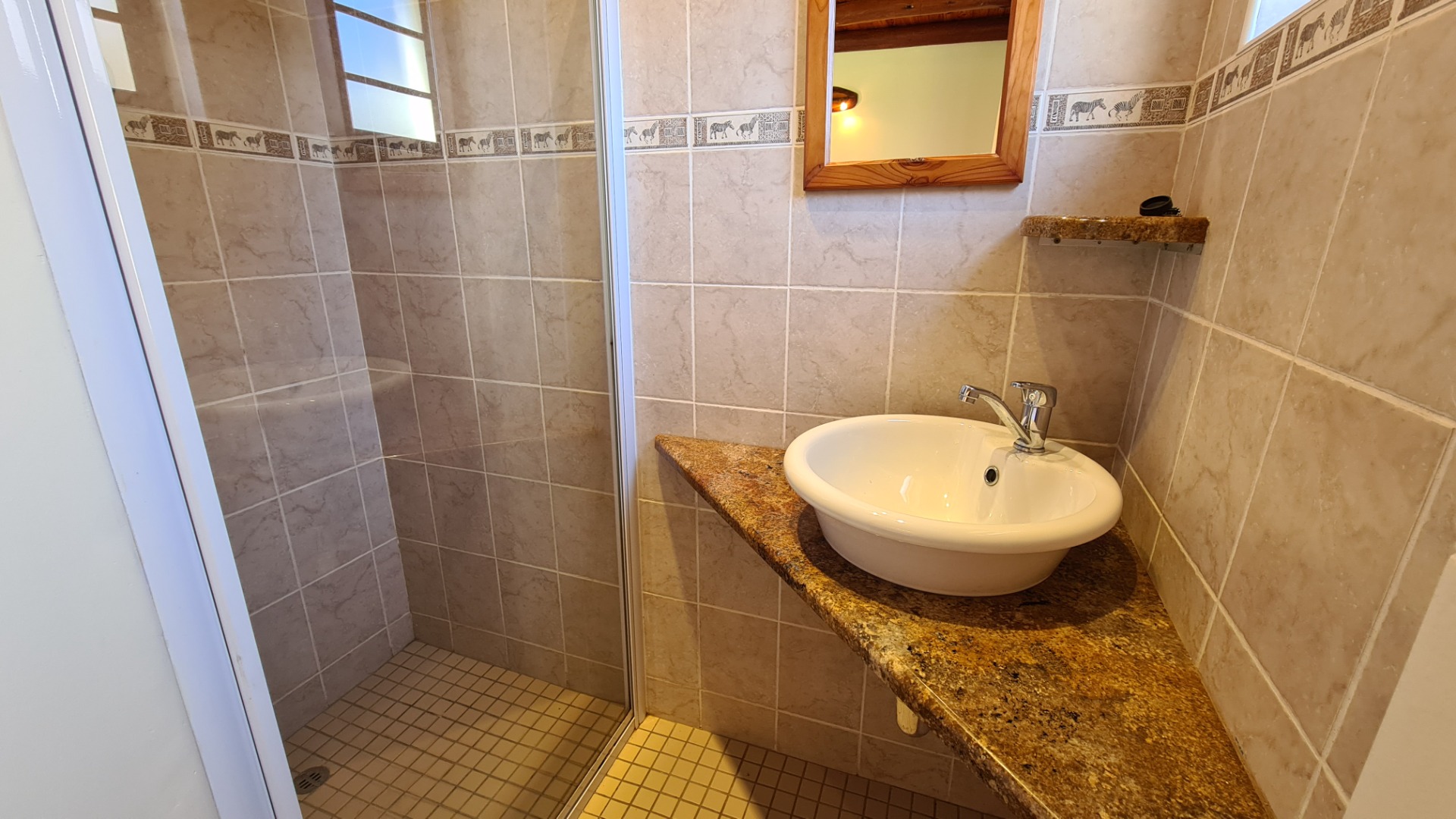 The house is secured with electric fencing and an alarm system.