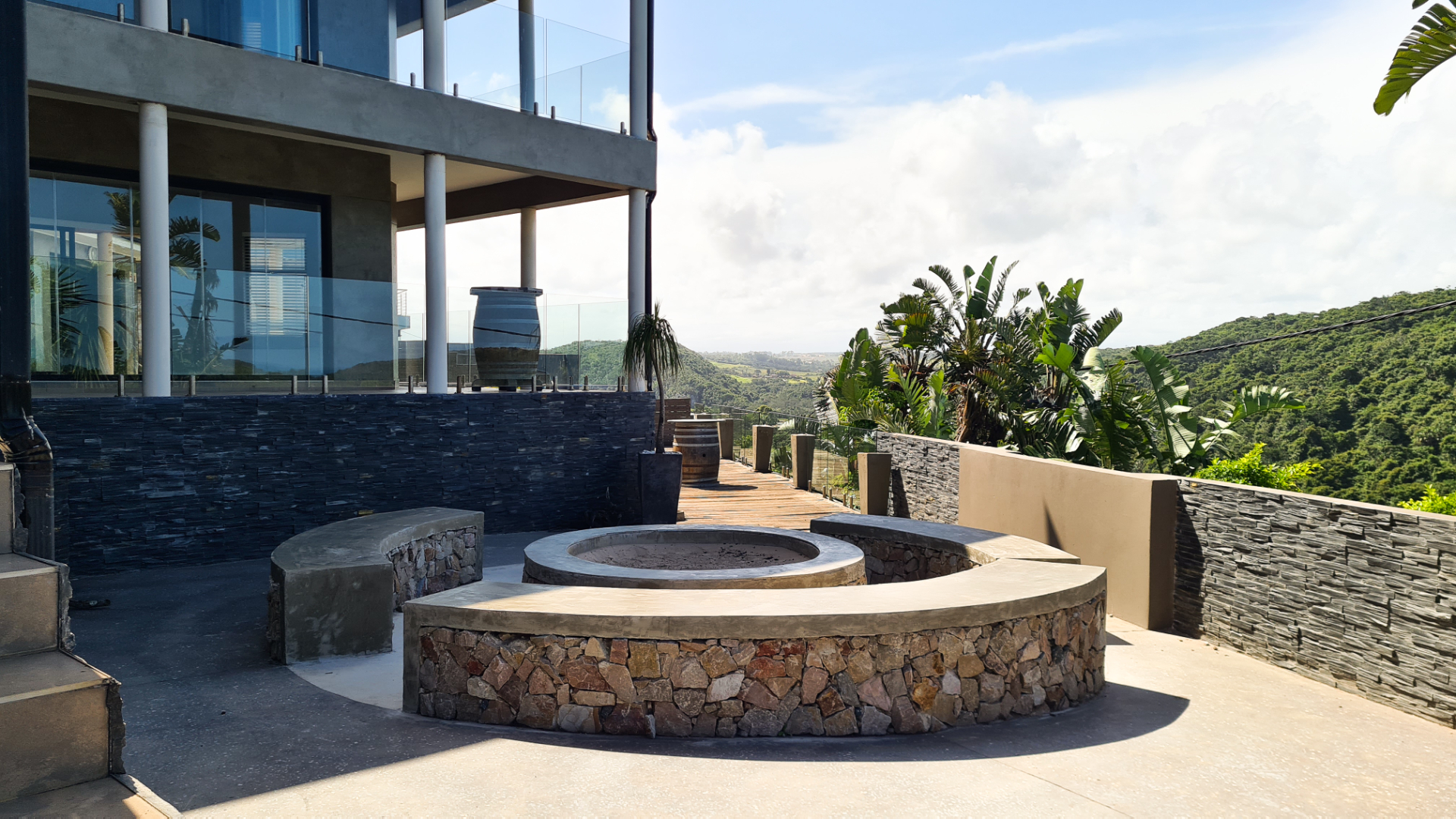 This house is a entertainer's dream; whether entertaining from the poolside with an outdoor braai area or from the indoor entertainment area with a built-in master braai, the frameless glass stacking doors will open up the space, to connect the house and the outside and reveal spectacular views. There is a fire pit for the summer evenings and a man cave!