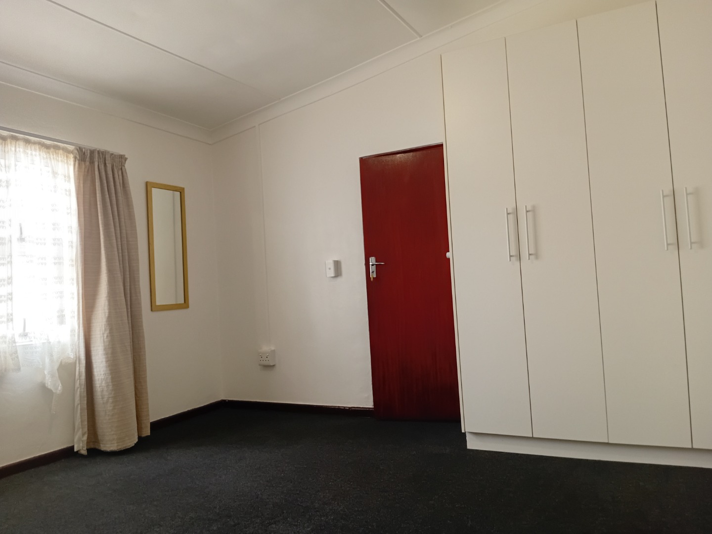 The flat is located within a shared yard, offering privacy while still being part of a secure residential setting.