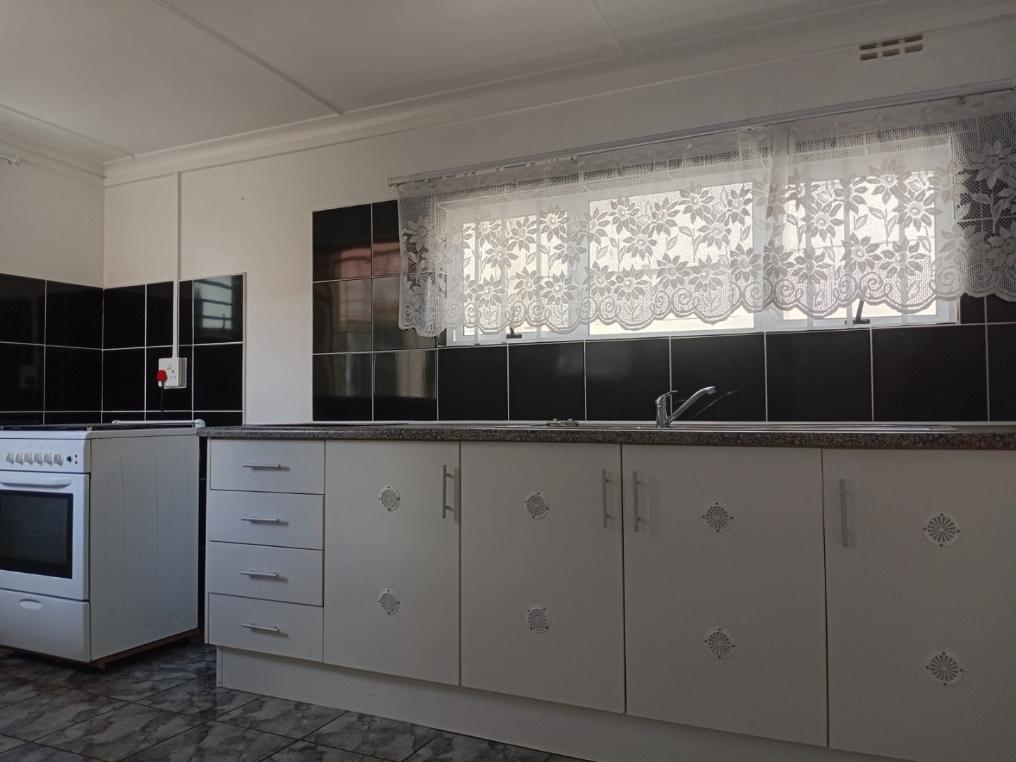 The property is fitted with an electric fence for added security and a solar geyser, helping to reduce electricity costs. Covered shared parking is available on the property.